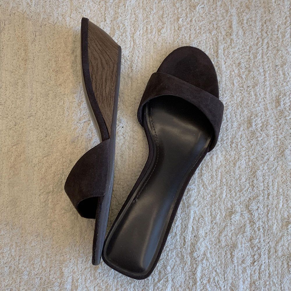 高级感坡跟凉拖鞋女2025新款夏季外穿一字拖复古棕色低跟露趾凉鞋