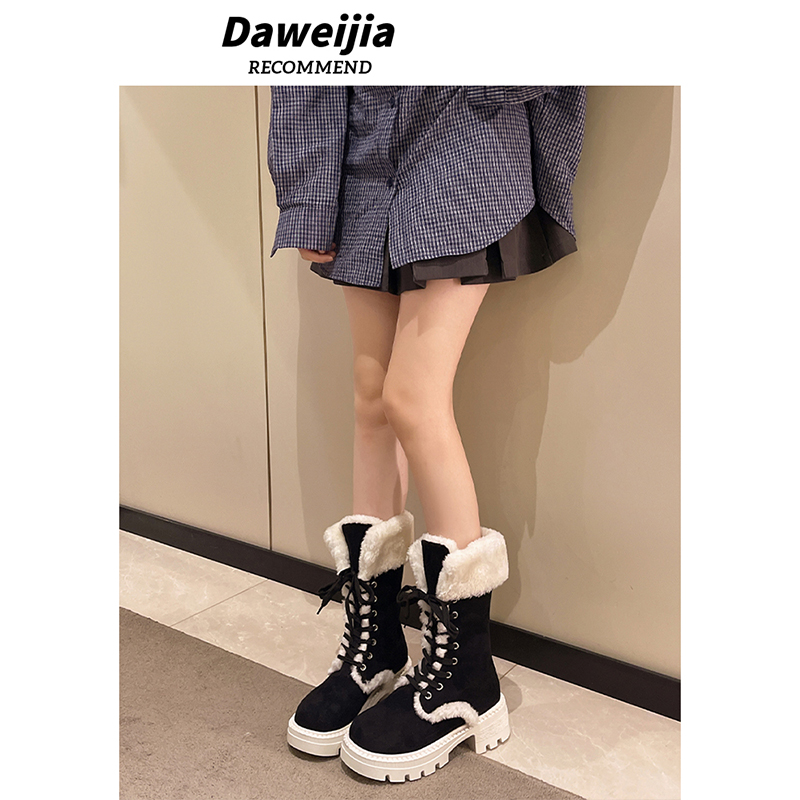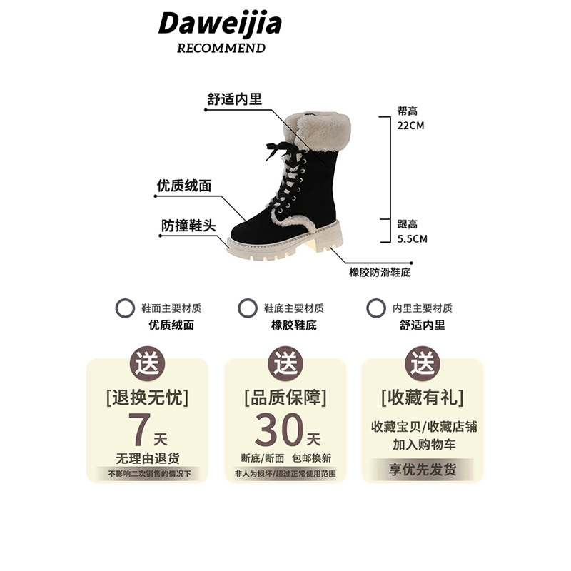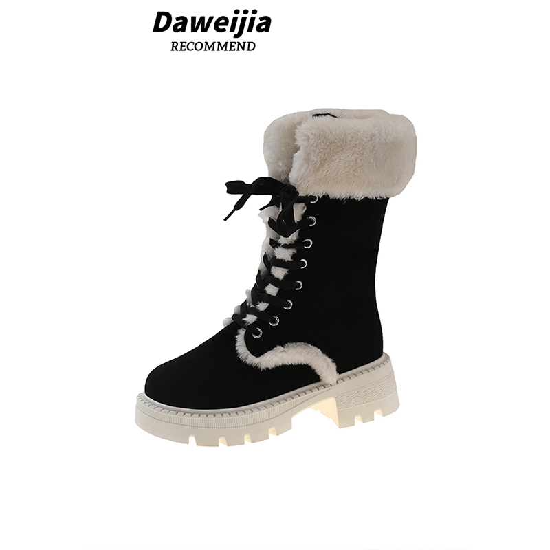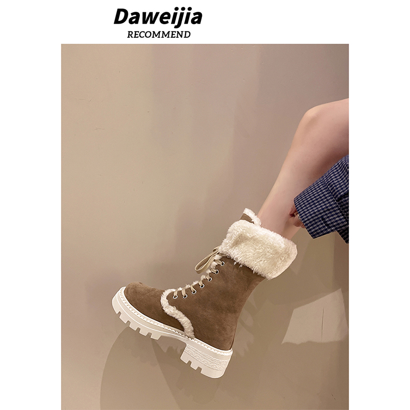 中筒雪地靴女2025新款冬季厚底马丁短靴子加绒加厚保暖毛毛大棉鞋