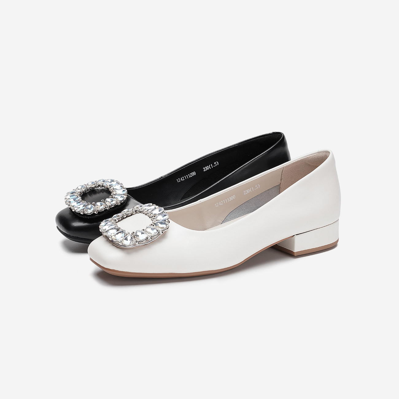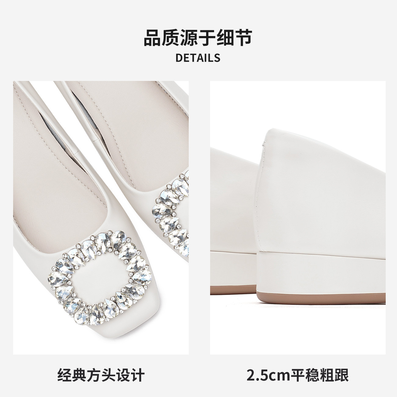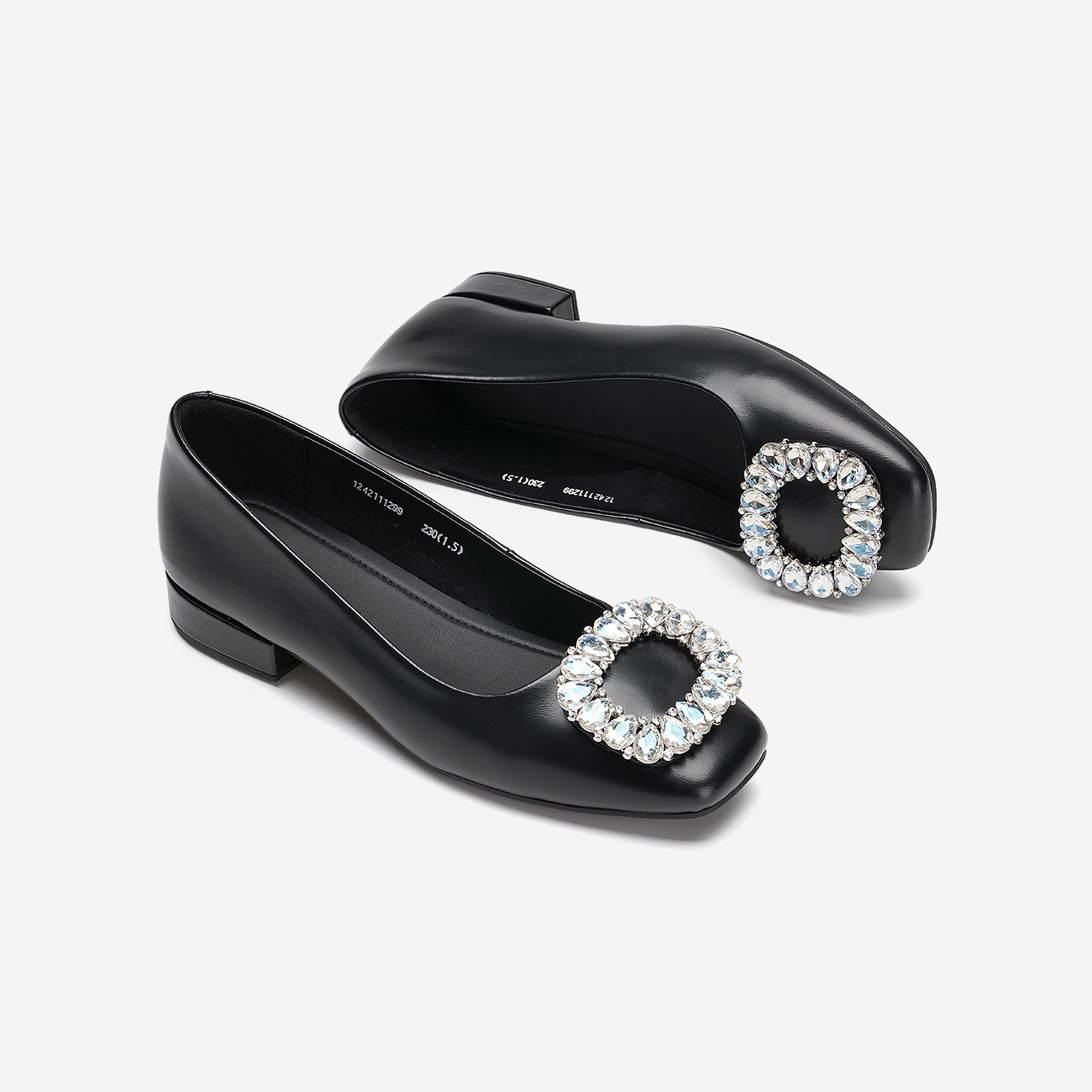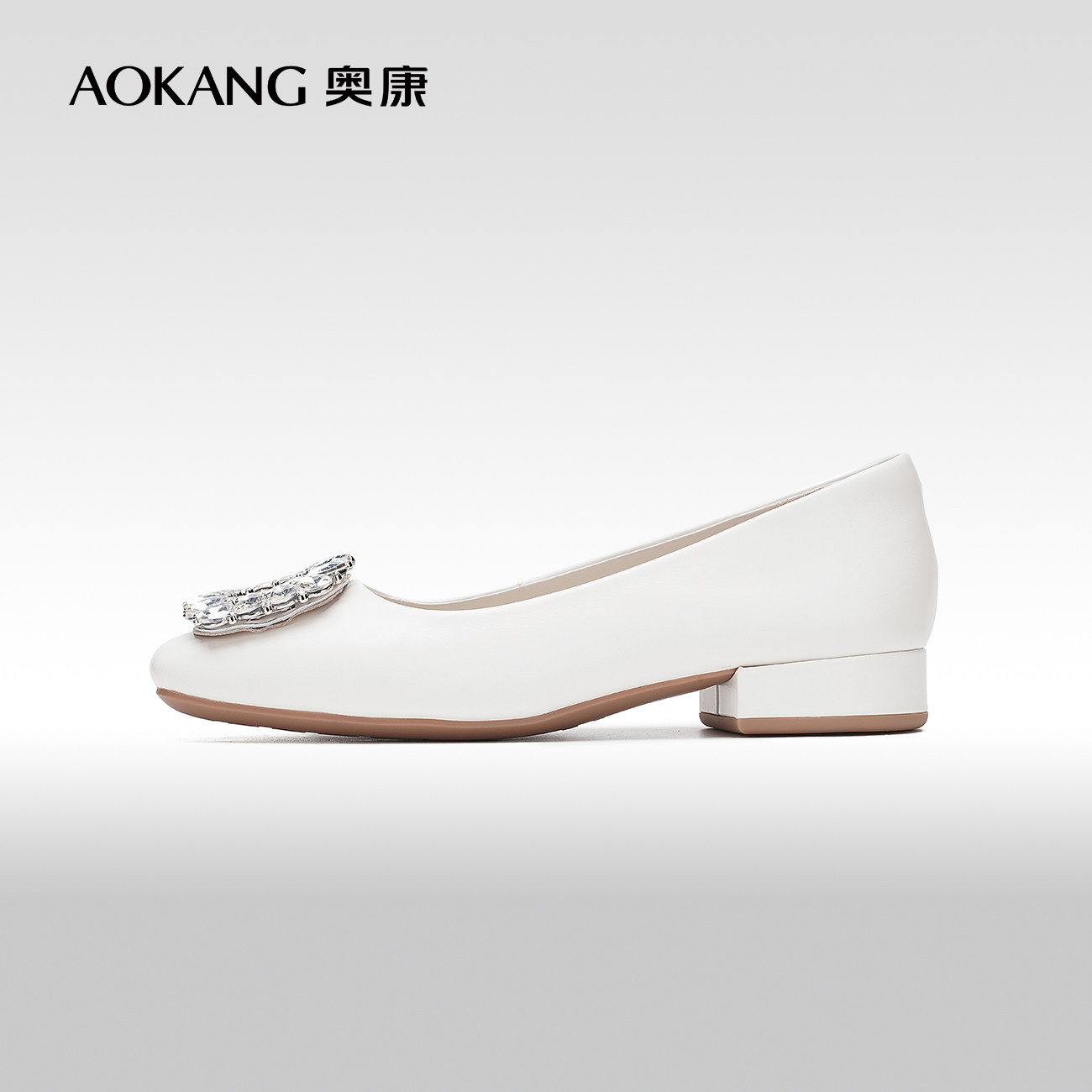 奥康气质水钻方扣显瘦单鞋豆豆鞋