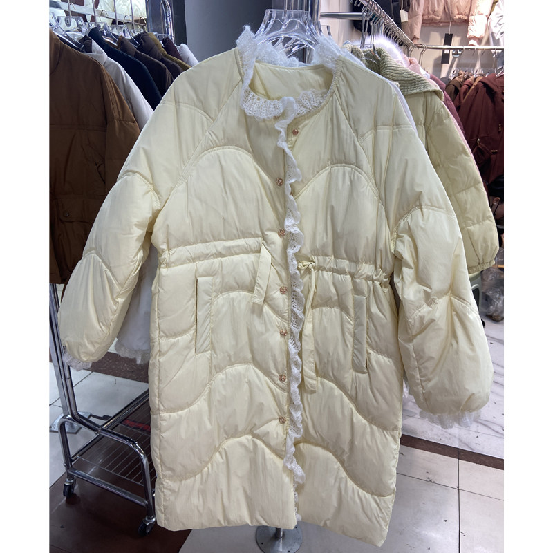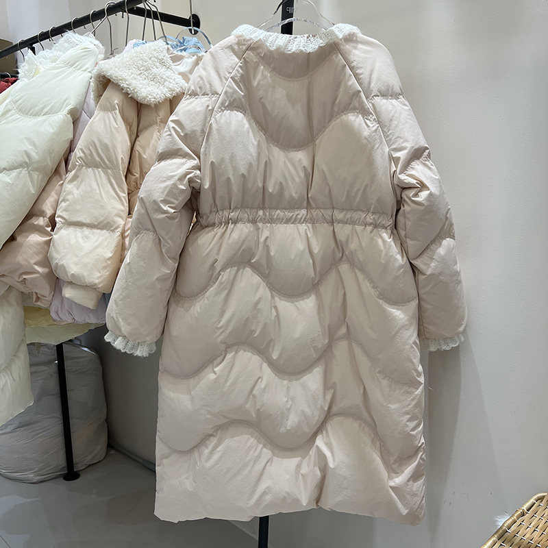 奶呼呼甜美蕾丝花边长款羽绒服女