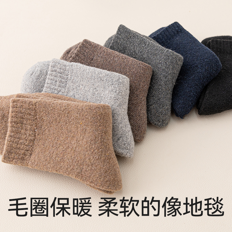 羊毛袜男士秋冬季中筒长袜保暖毛巾棉袜毛圈地板袜加绒加厚袜子男
