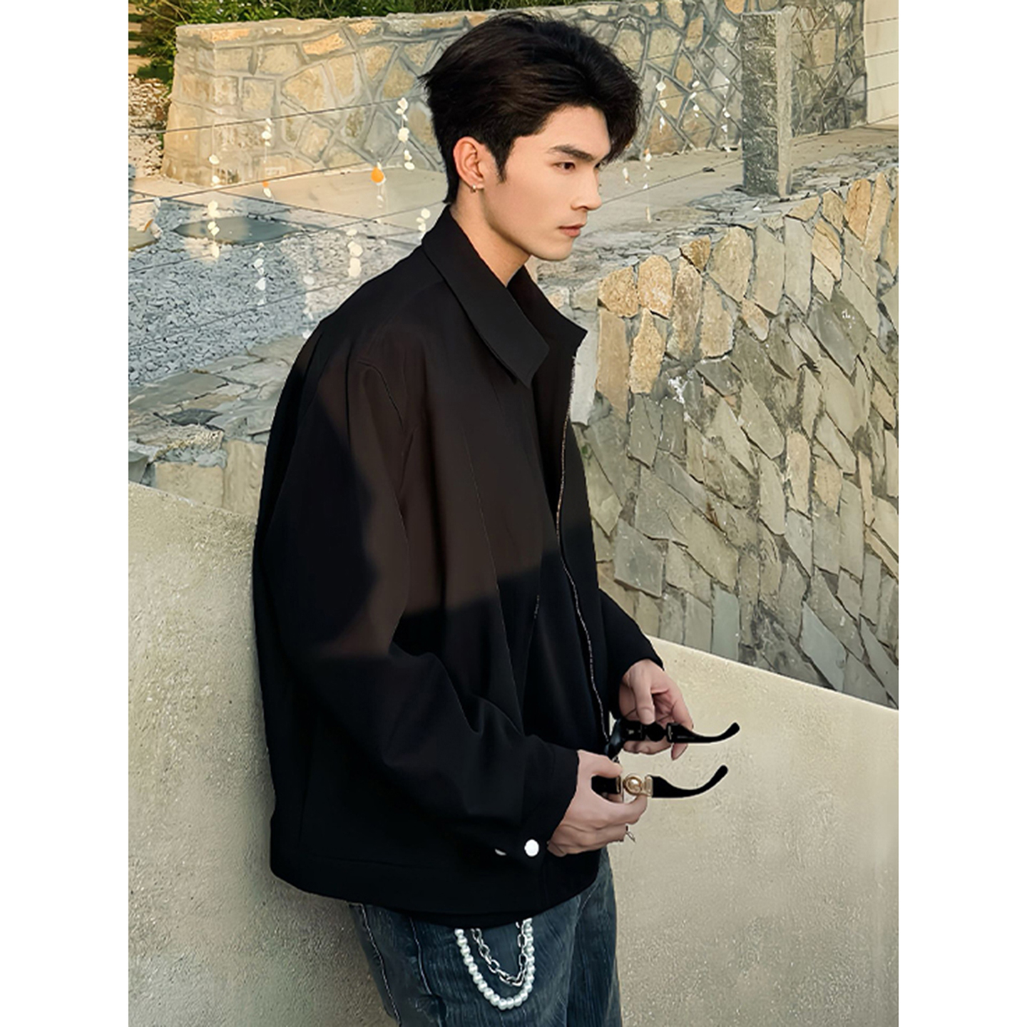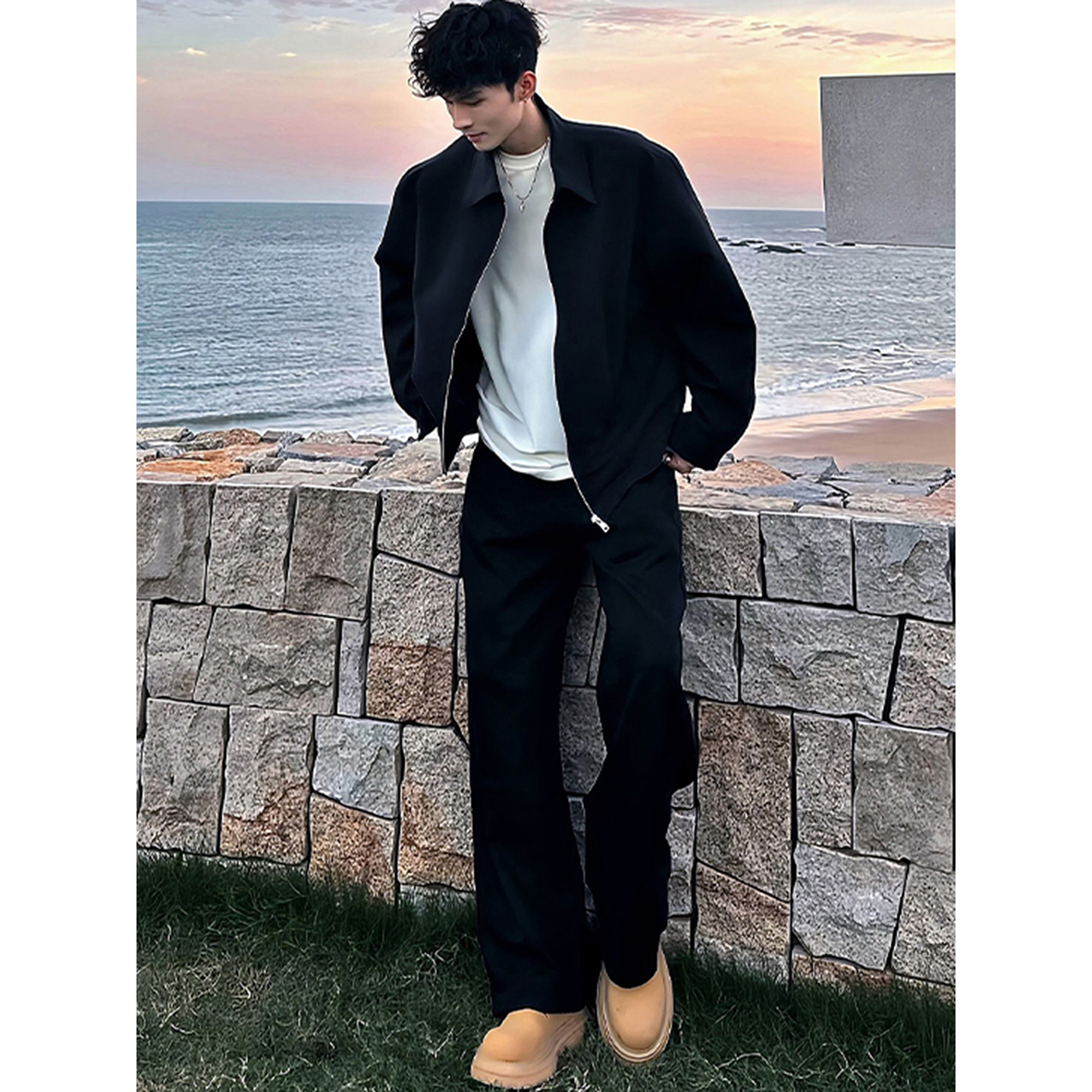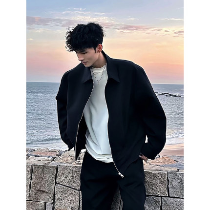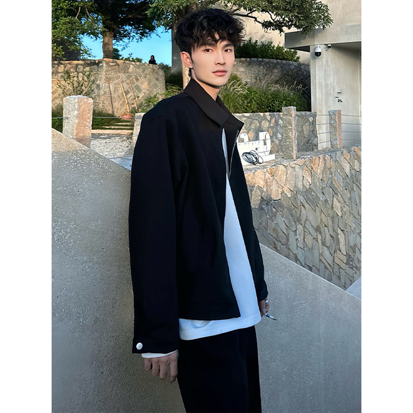 黑色短款夹棉行政夹克棉服男秋冬高级感年轻人公务员垫肩西装外套