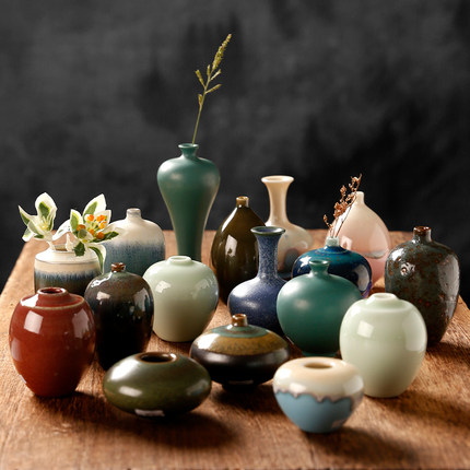 孤品陶瓷迷你小花瓶创意窑变花器家用插花桌面装饰摆件玄关书房小