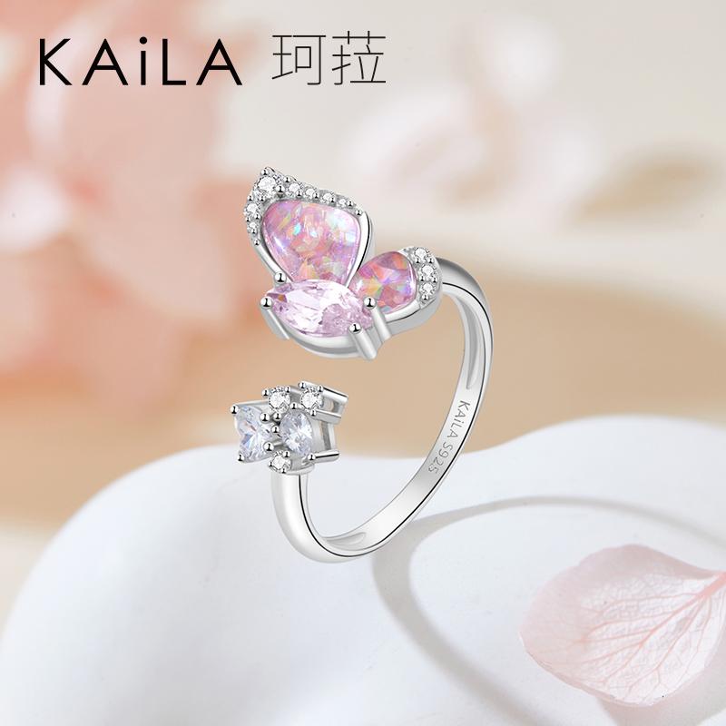 Kaila蝴蝶戒指女小众设计轻奢高级感粉钻锆石个性可调节指环礼物