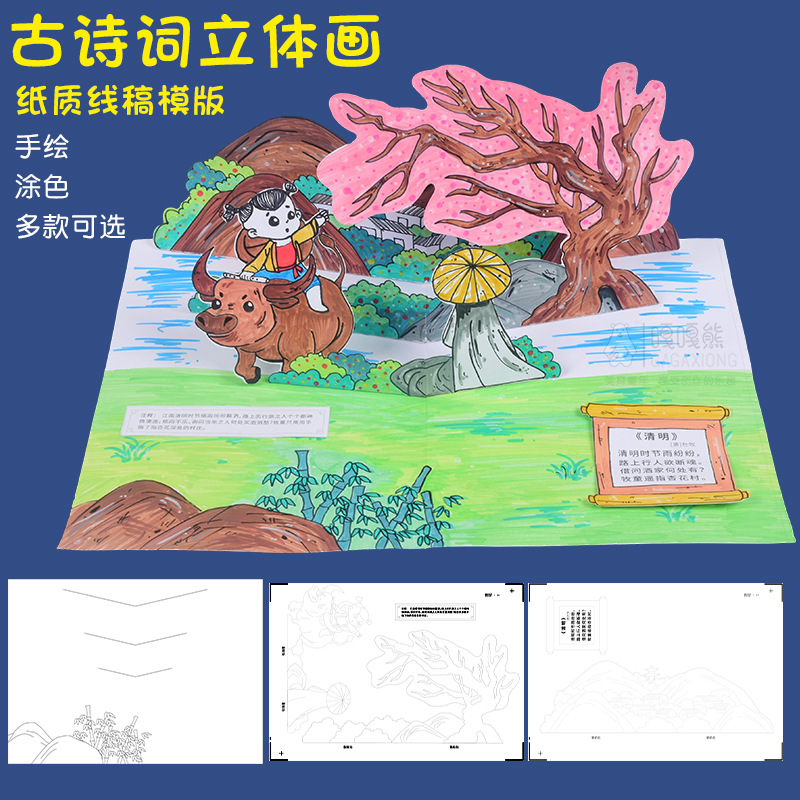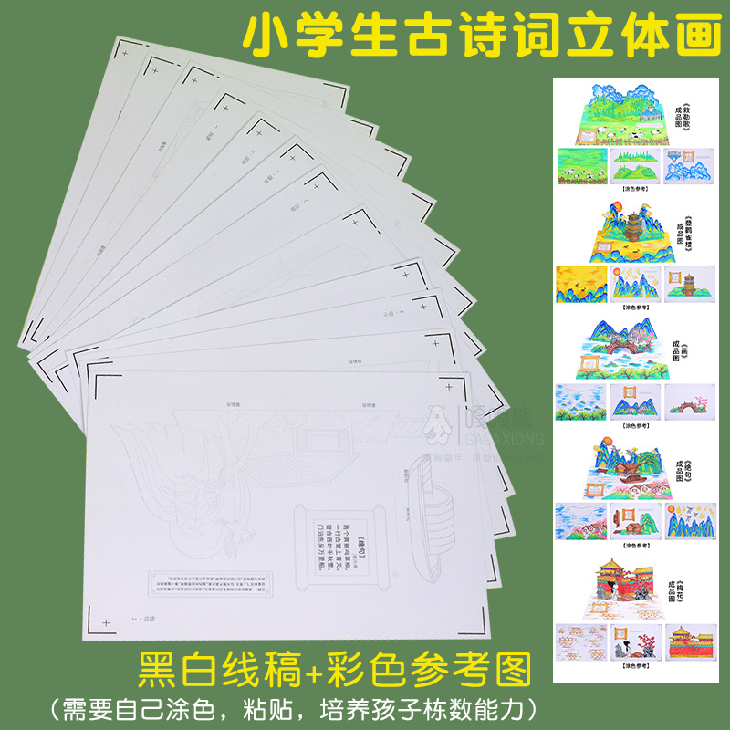 涂鸦古诗儿童手工diy立体书自制唐诗宋词创意美术材料学生粘贴画