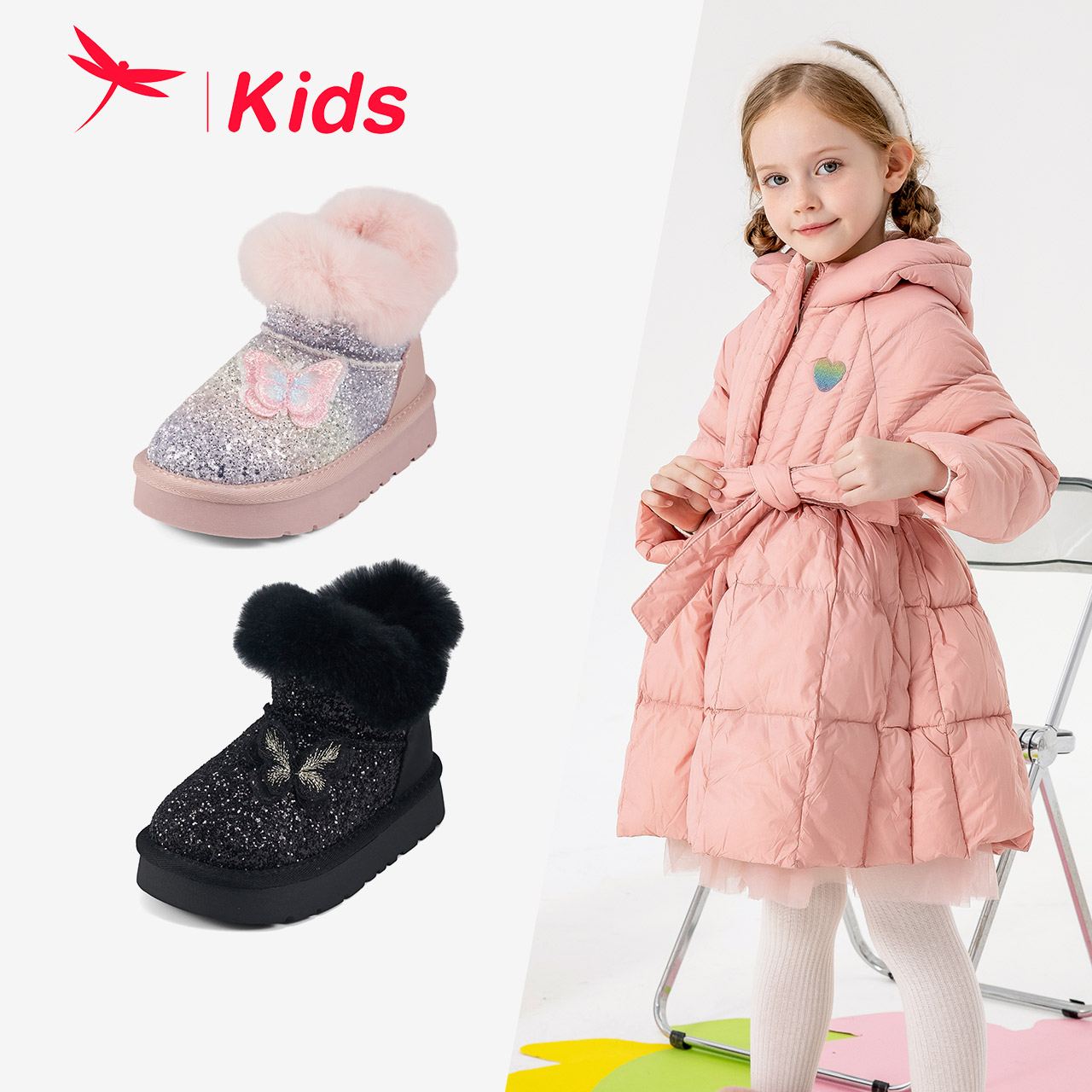 红蜻蜓童鞋女童雪地靴儿童冬季新款宝宝加厚加绒保暖棉靴短靴子