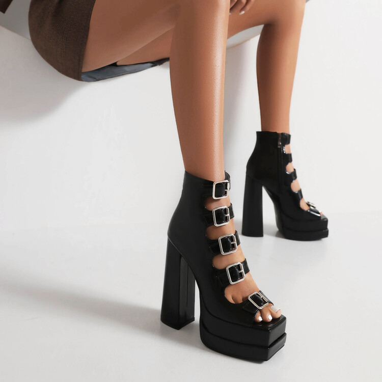 凉鞋女仙女风2023年新款夏季小众百搭粗跟一字扣带方头露趾高跟鞋