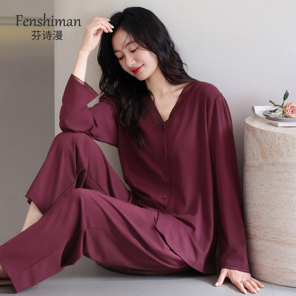 睡衣女士春秋款长袖中老年妈妈莫代尔棉绸秋季2026新款冰丝家居服