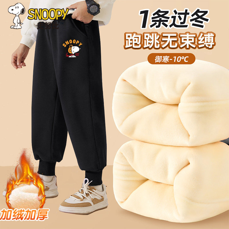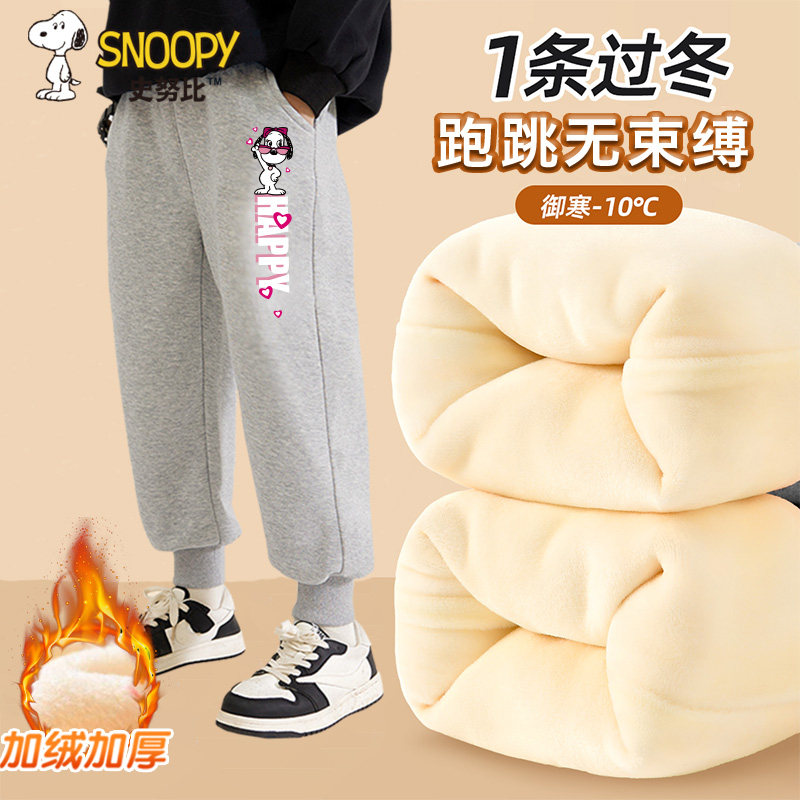 史努比2024新款男女童加绒卫裤儿童加绒加厚裤子宝宝保暖百搭长裤