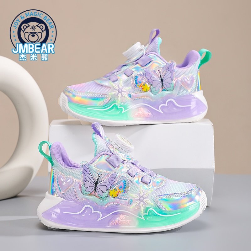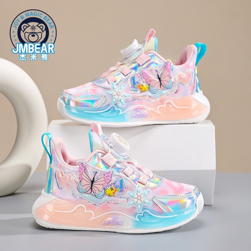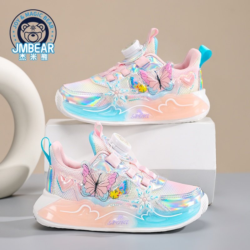 杰米熊童鞋2025秋季新款时尚女童运动鞋休闲透气旋转扣跑步鞋耐磨