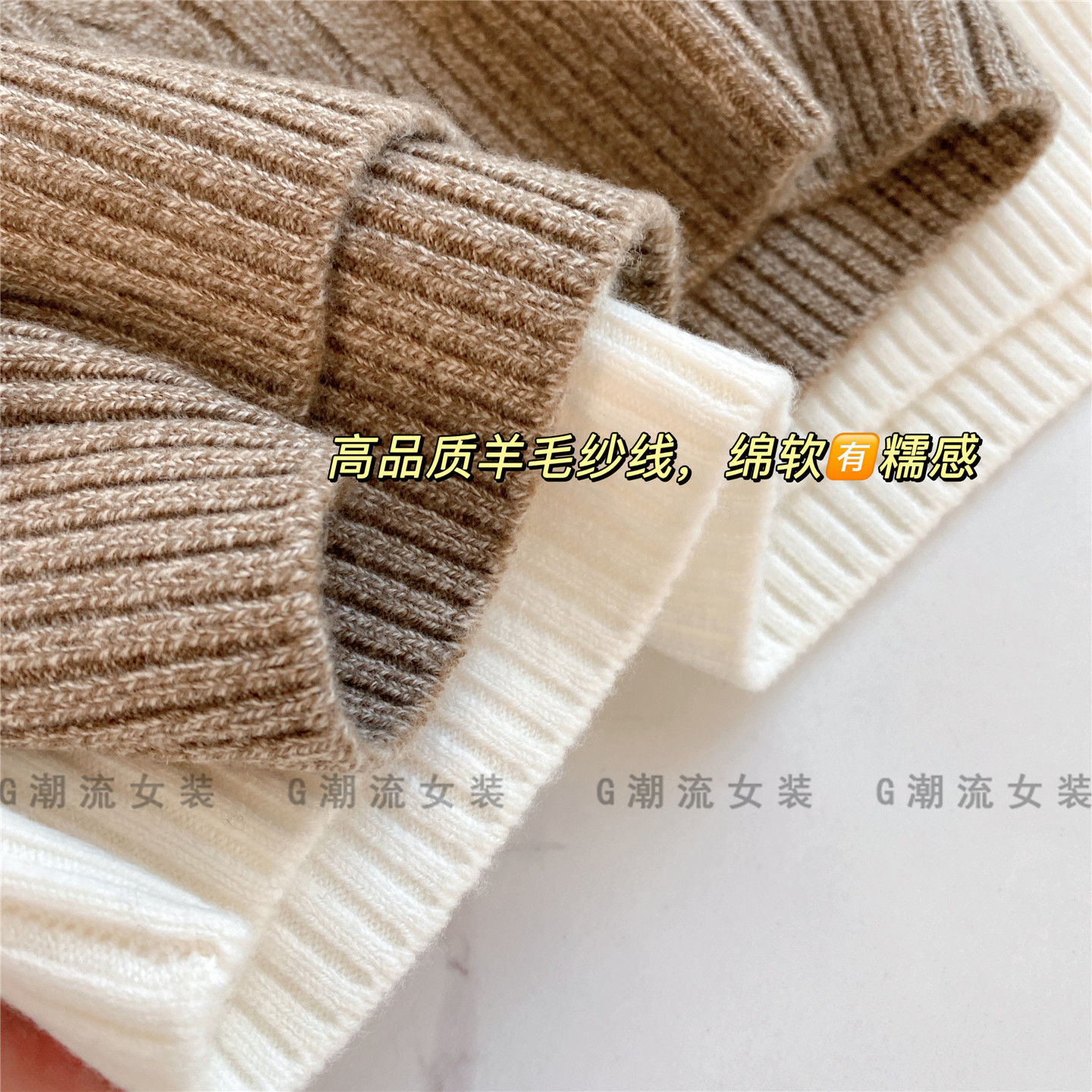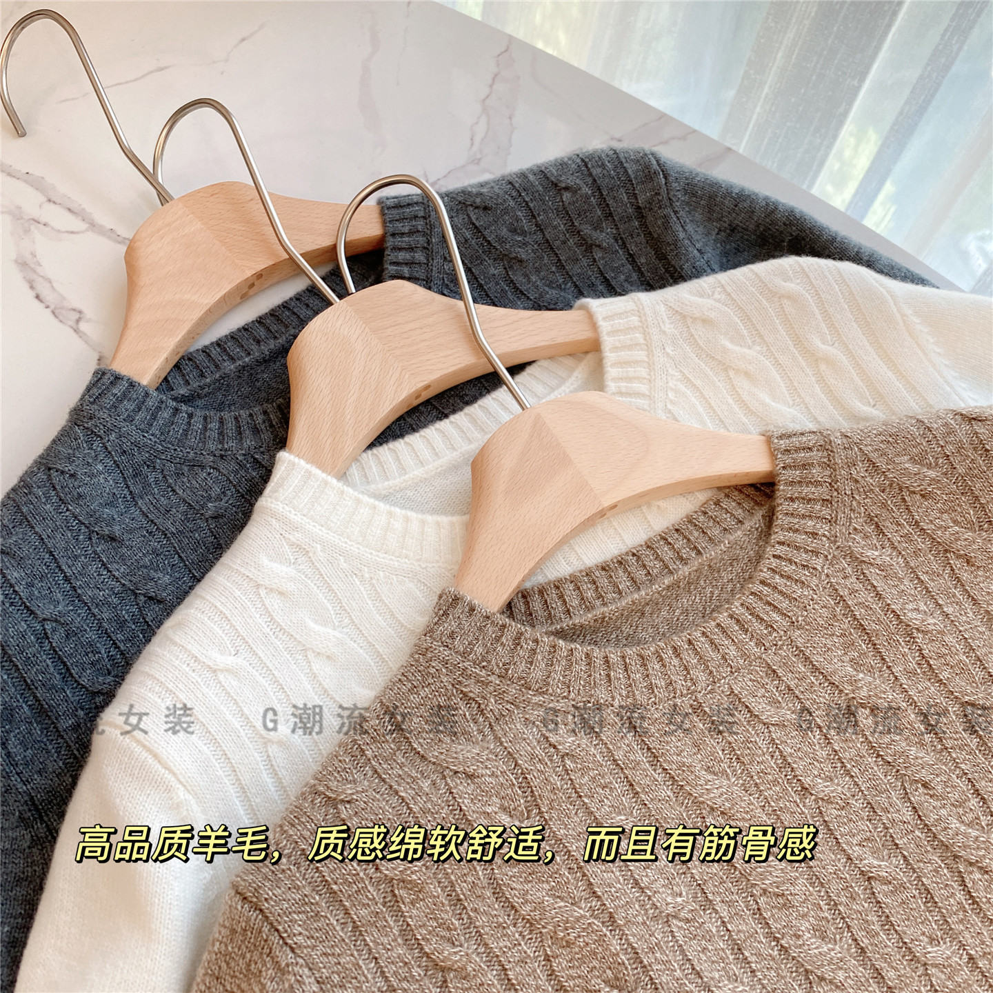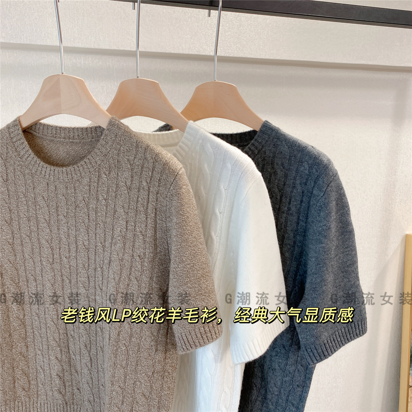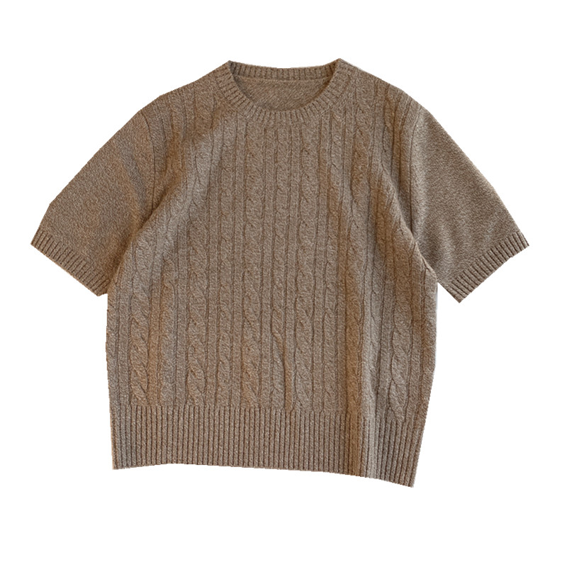 高端老钱风OL通勤商务休闲LP绞花圆领套头短袖羊毛衫上衣纯色女秋