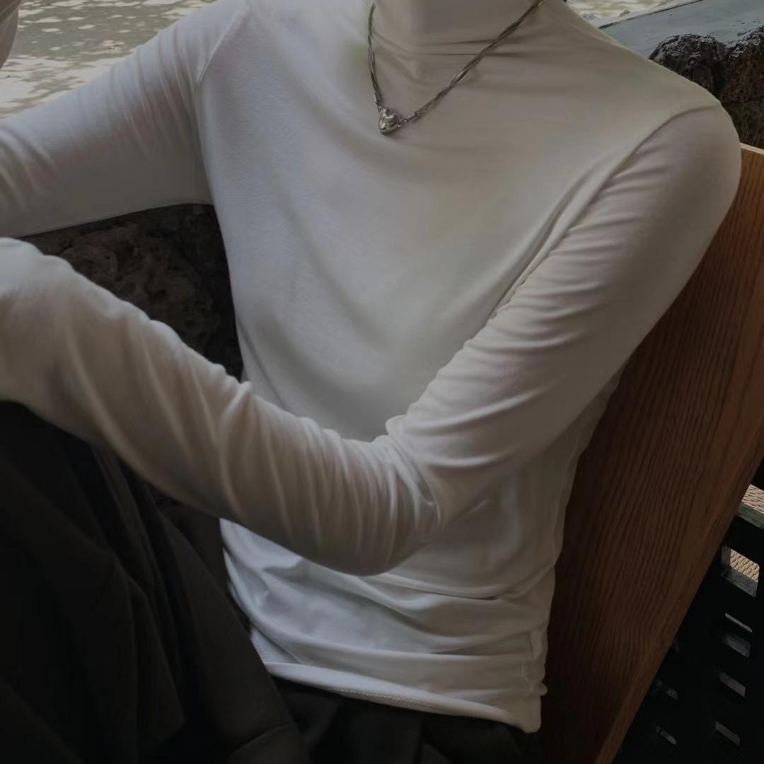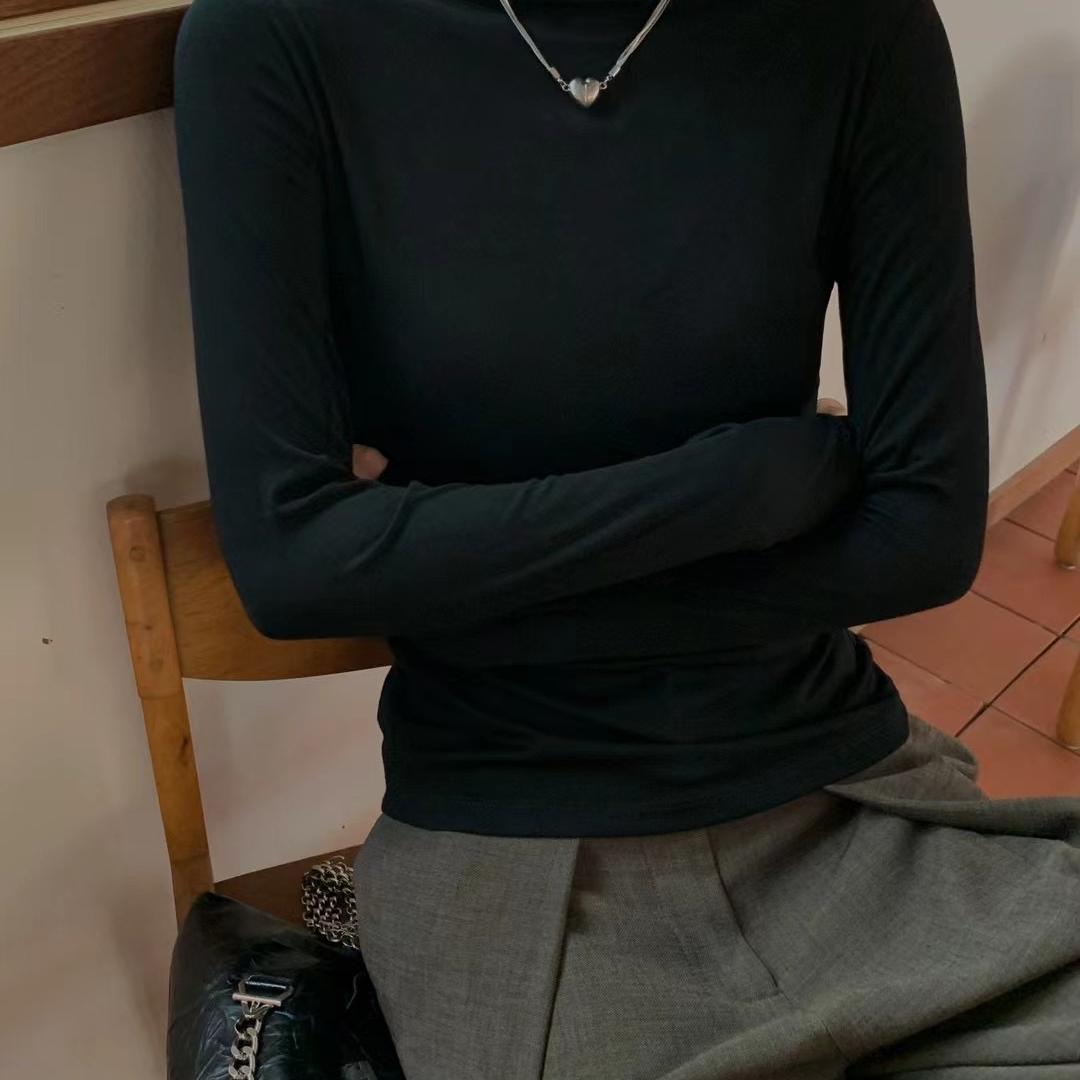元熙3072半高领打底衫女2024秋冬中领内搭洋气减龄修身长袖上衣薄