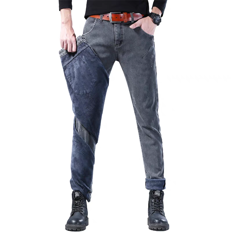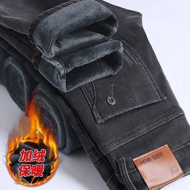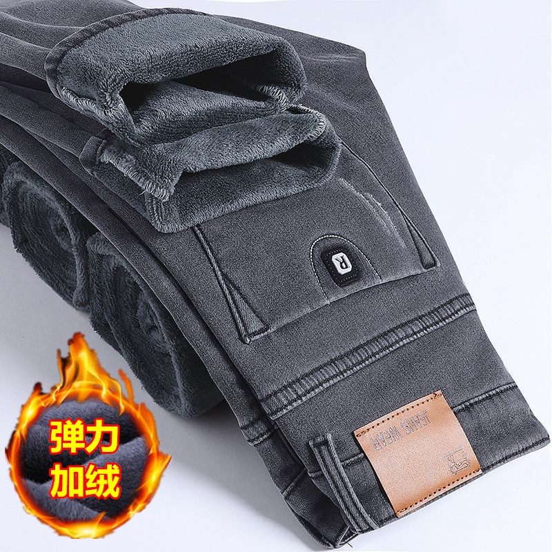 冬季加绒加厚牛仔裤男秋冬新款修身小脚弹力休闲耐磨保暖男士裤子