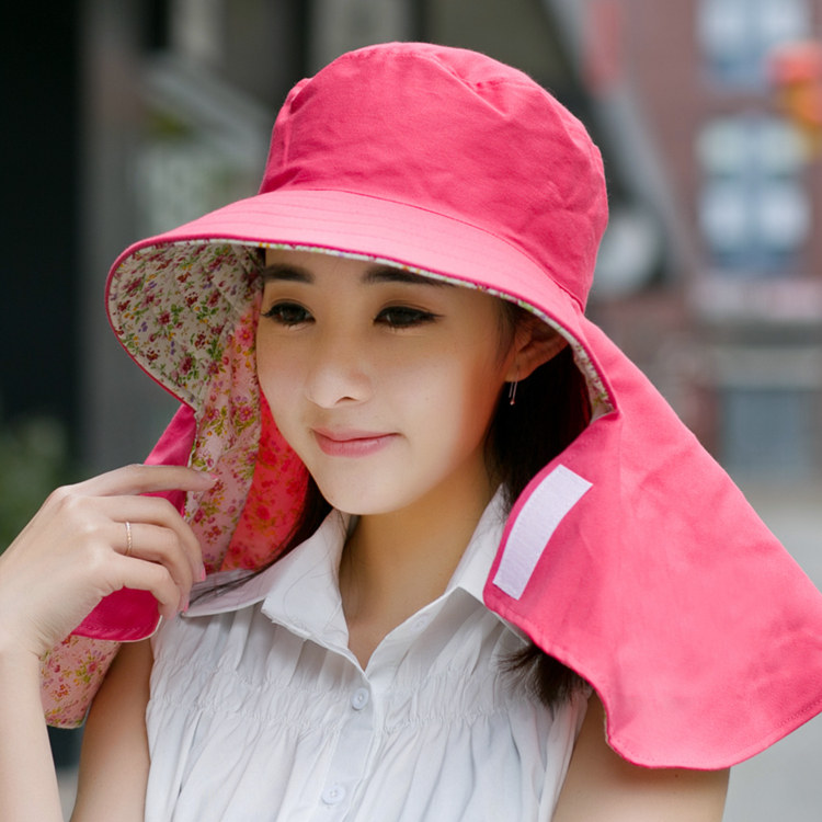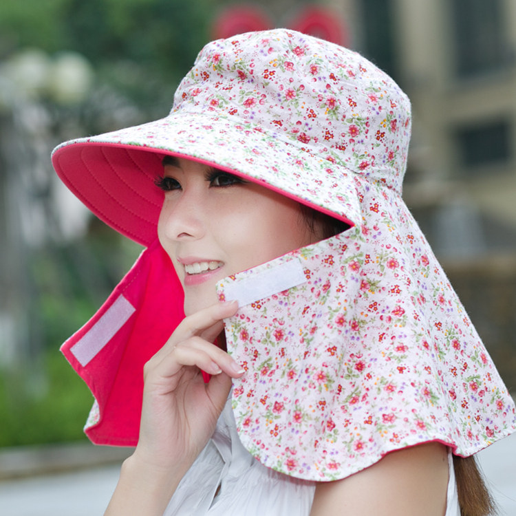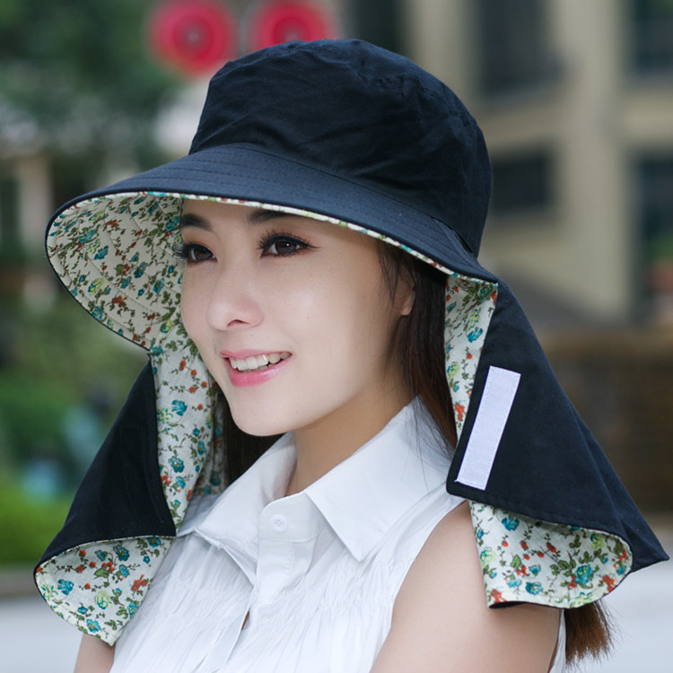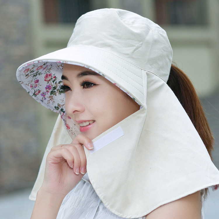遮阳帽子女士夏天户外骑车防晒帽遮脸沙滩太阳帽大沿可折叠采茶帽