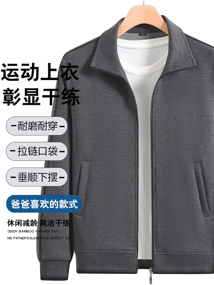 爸爸外套春秋款老人晨练卫衣运动服开衫中老年人男装运动上衣秋季