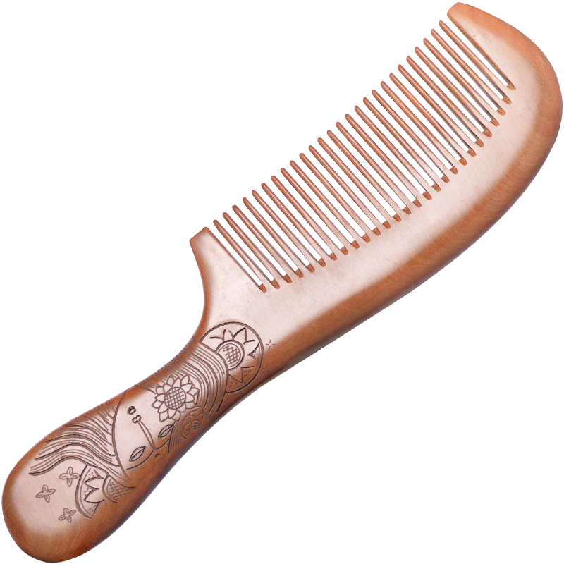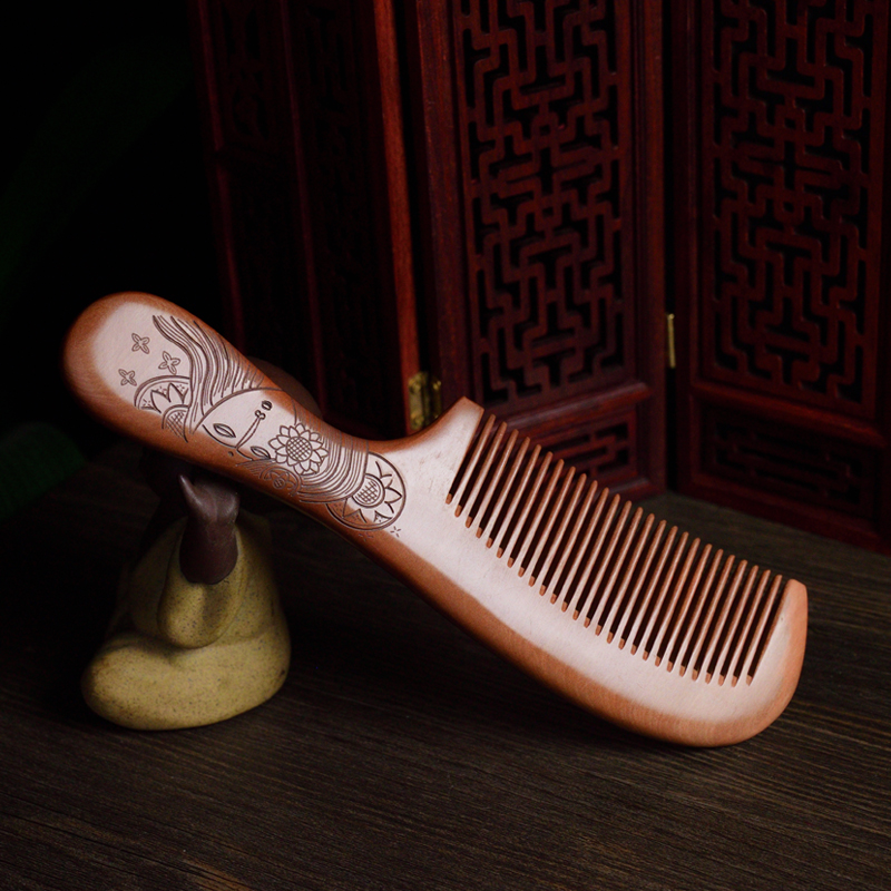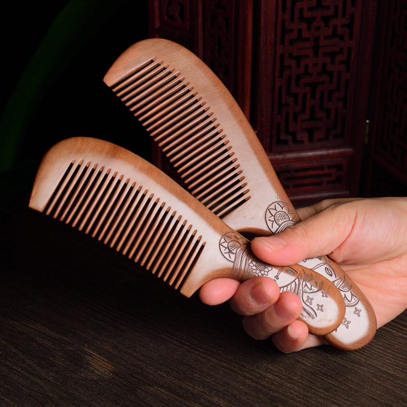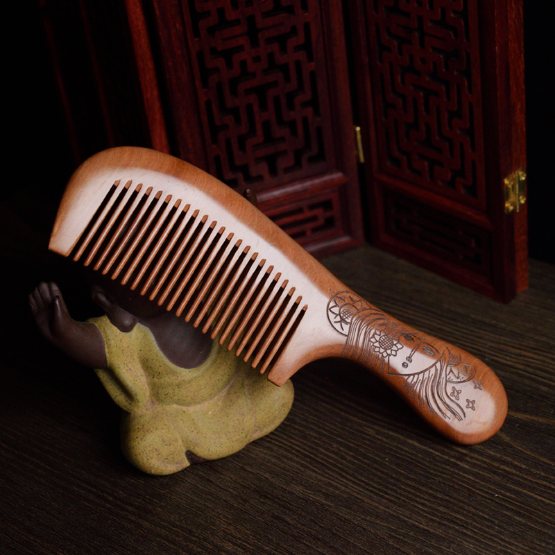 郎府老桃木梳子整木雕花仙子手柄款顺发细齿造型大小号长短发男女