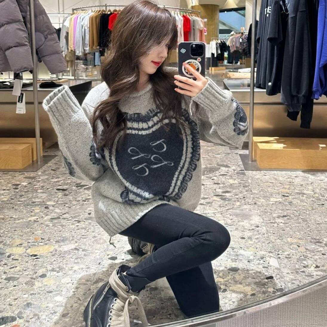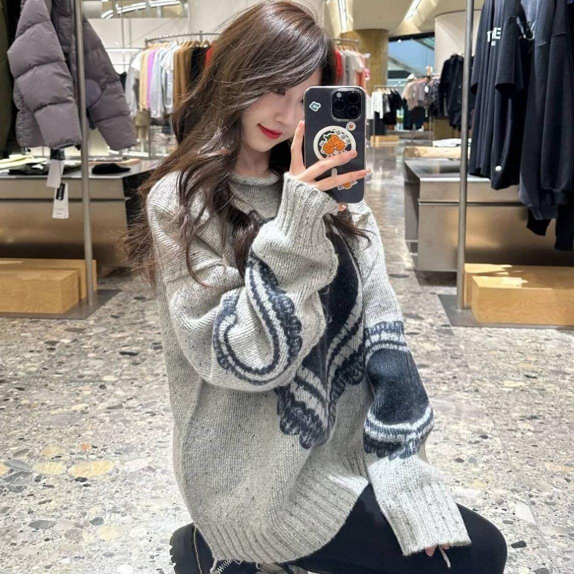 超重工!慵懒风蕾丝提花套头毛衣女秋装新款韩版宽松长袖针织衫潮