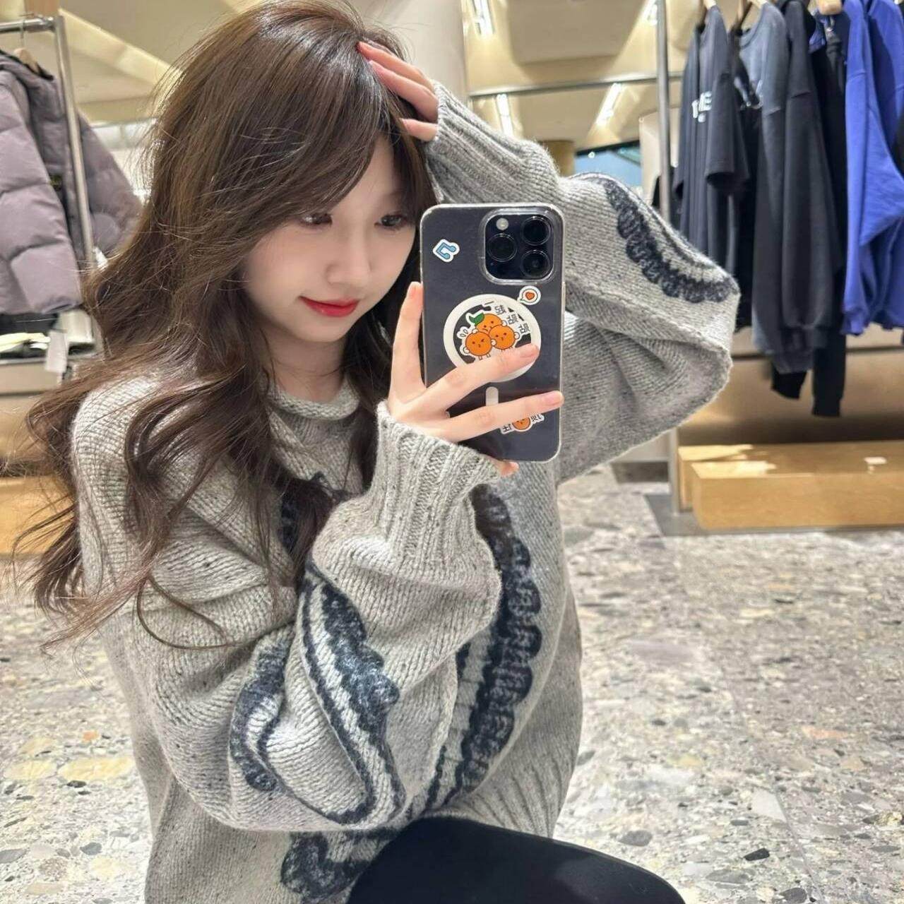 超重工!圆领提花宽松毛衣