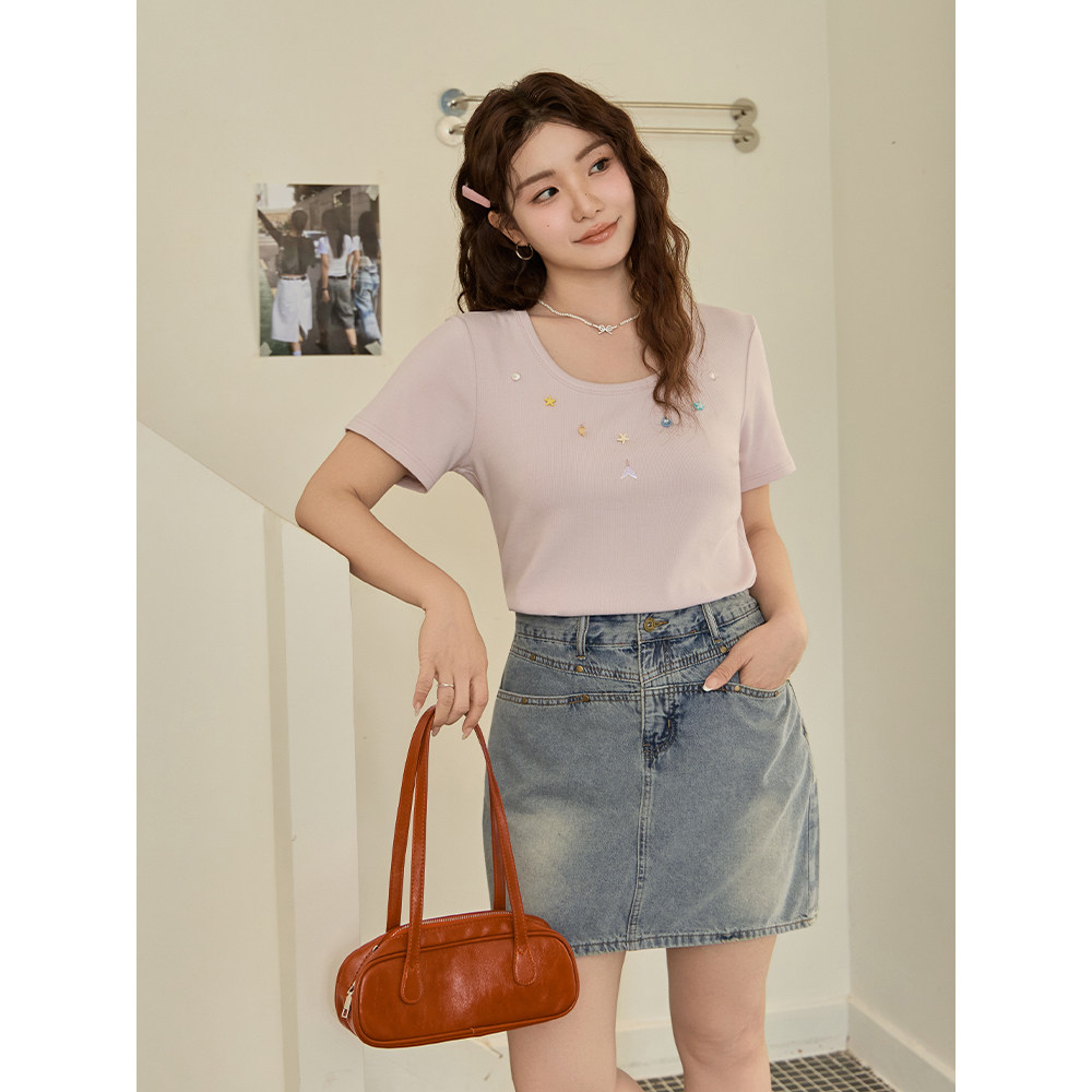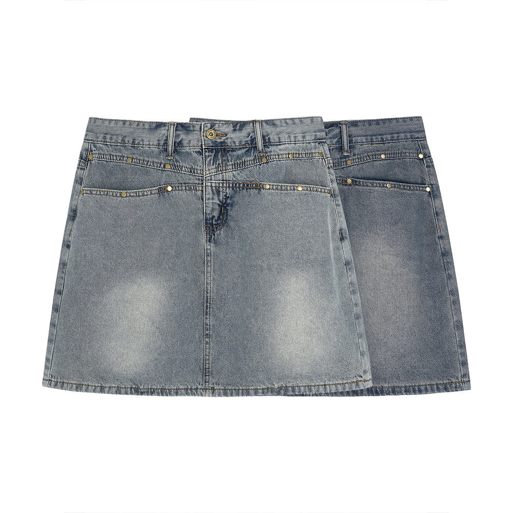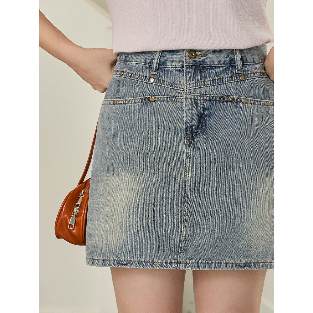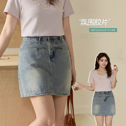 【清仓】小波家2026夏季胖mm复古高腰防走光A字牛仔半身裙