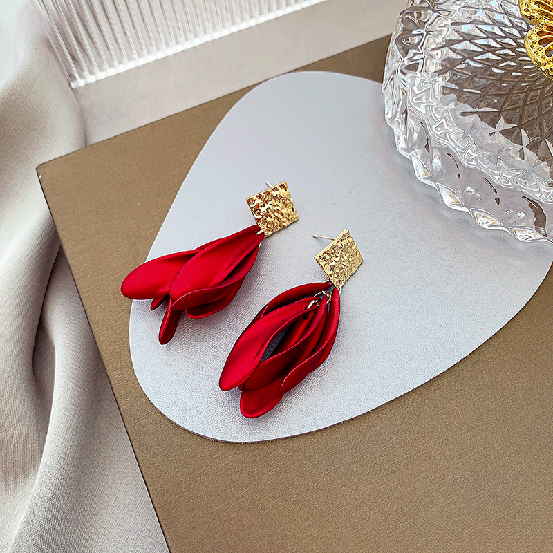 蚊香盘无洞耳夹无痛红色花瓣耳环