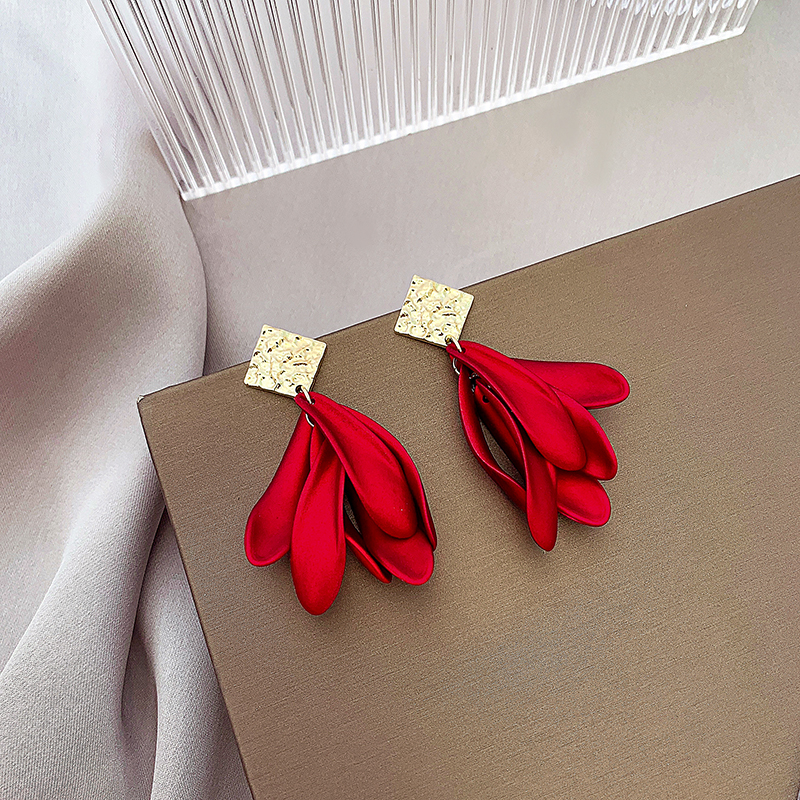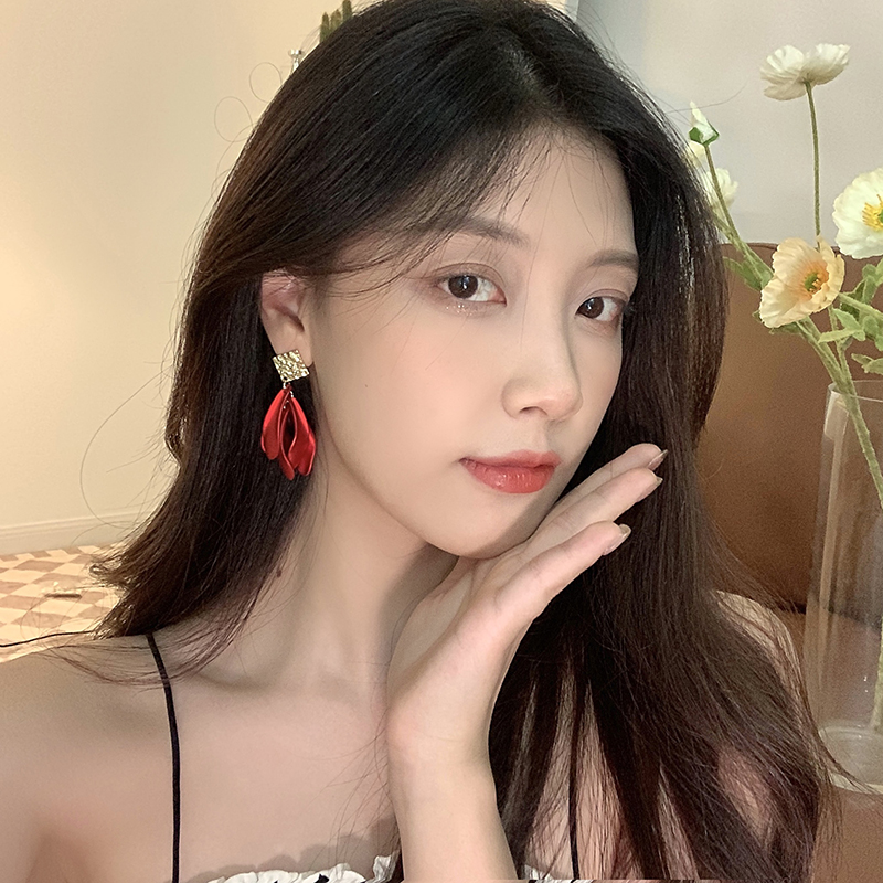 中国风红色复古宫廷花瓣耳环轻奢气质高级感耳饰蚊香盘无耳洞耳夹