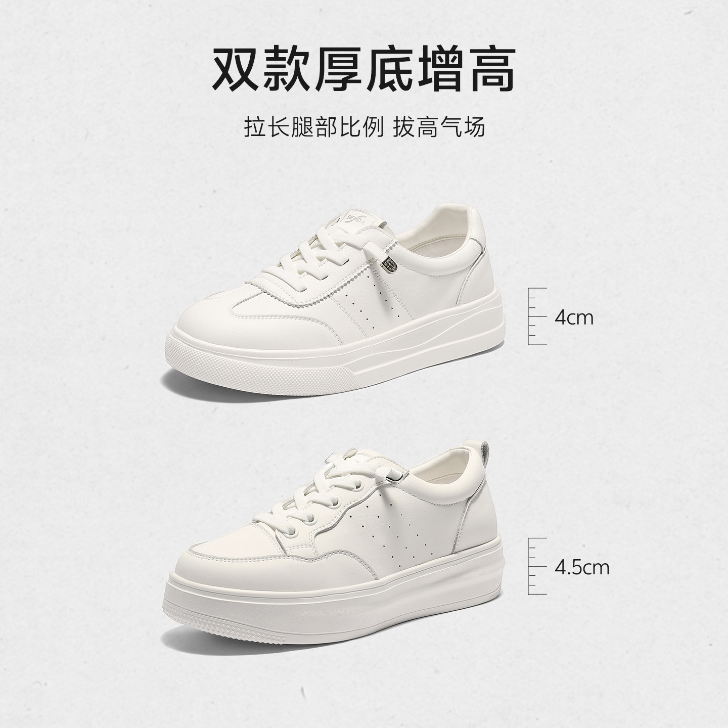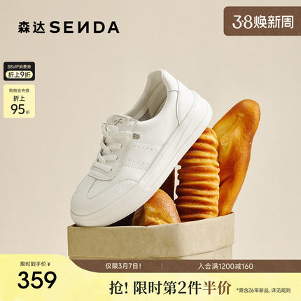 森达百搭小白鞋女商场同款简约休闲2026年新款增高厚底板鞋XWR01