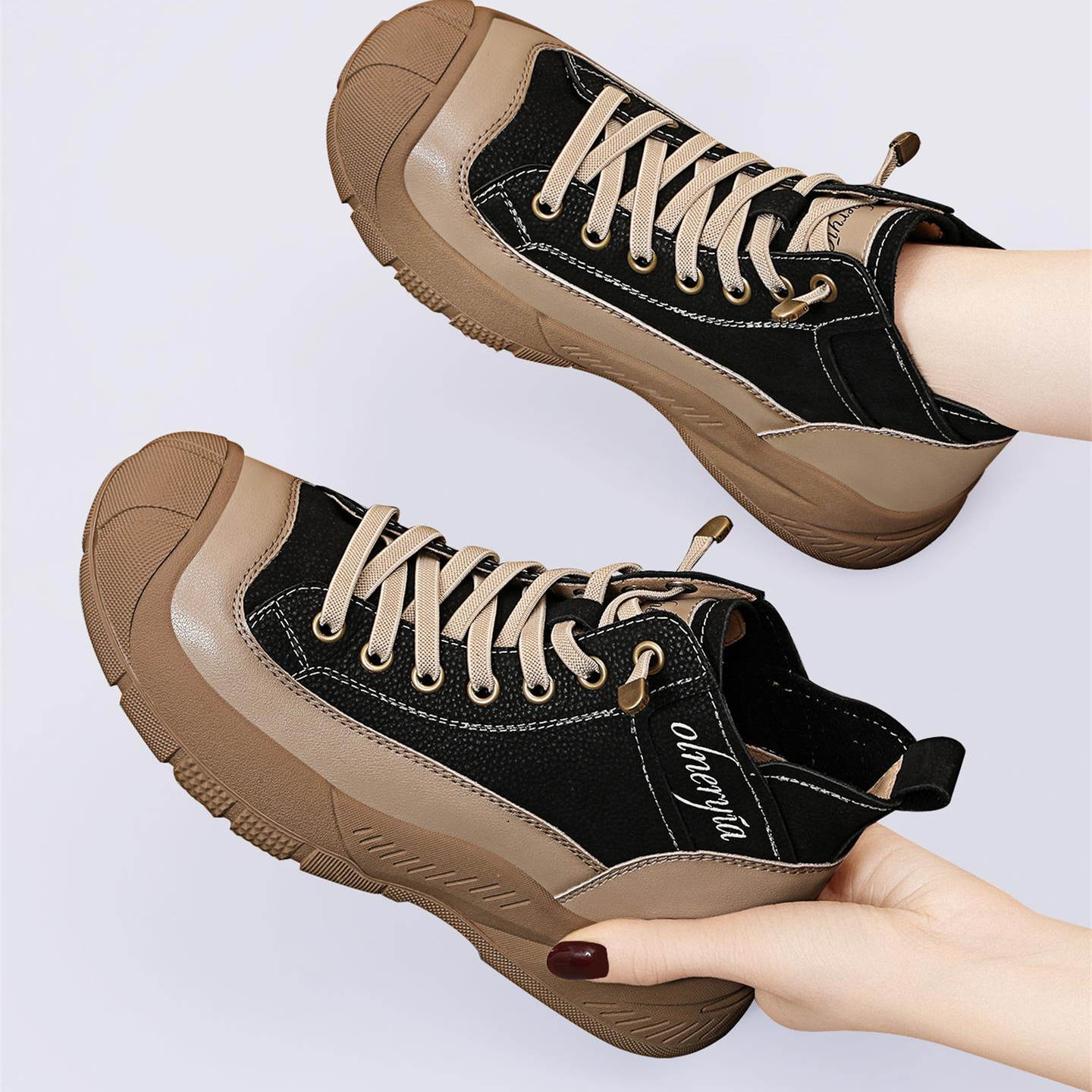 气质厚底高帮真皮运动鞋女2025秋冬新款平底防滑旅游鞋轻便休闲鞋