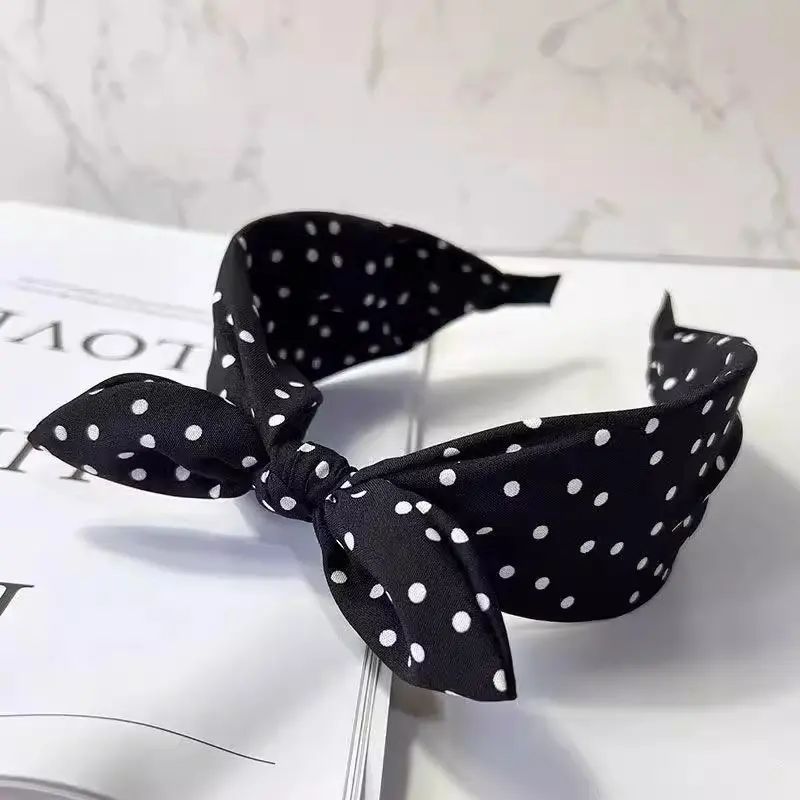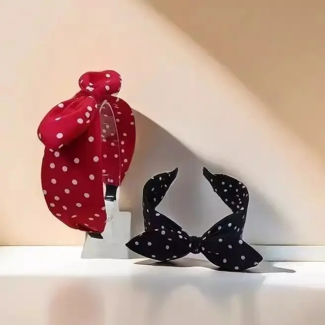 港风复古怀旧红色波点宽发箍儿童头巾头饰女款蝴蝶结发饰头箍配饰