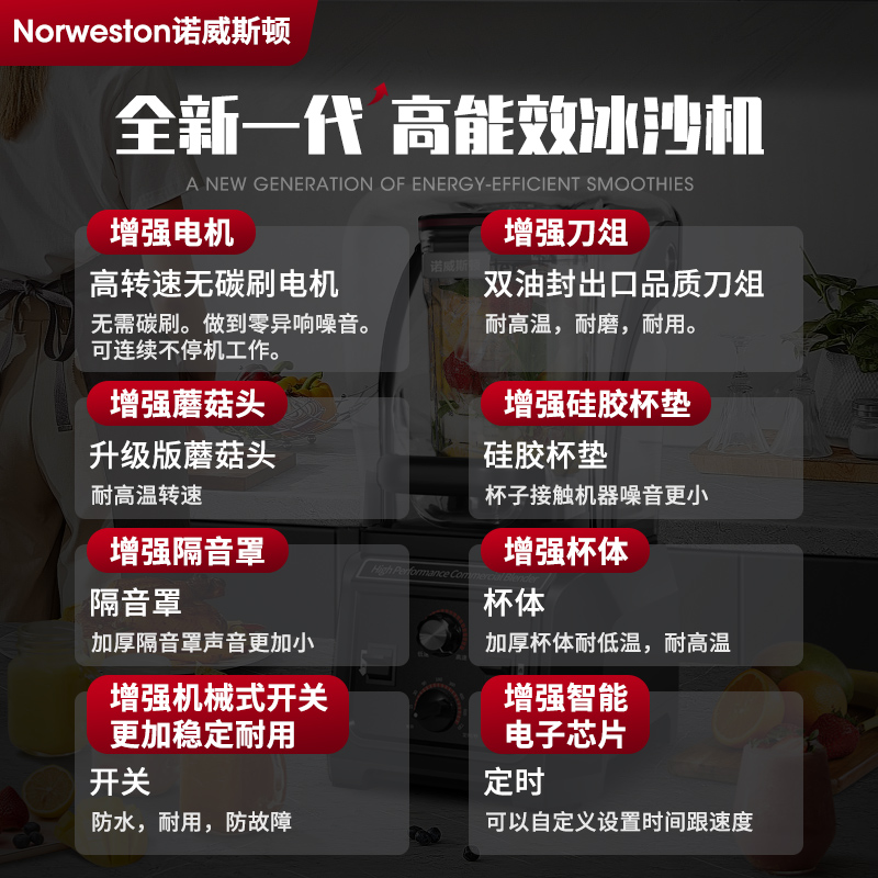 诺威斯顿商用沙冰机大马力萃茶奶盖奶茶店全自动带罩奶昔碎冰机