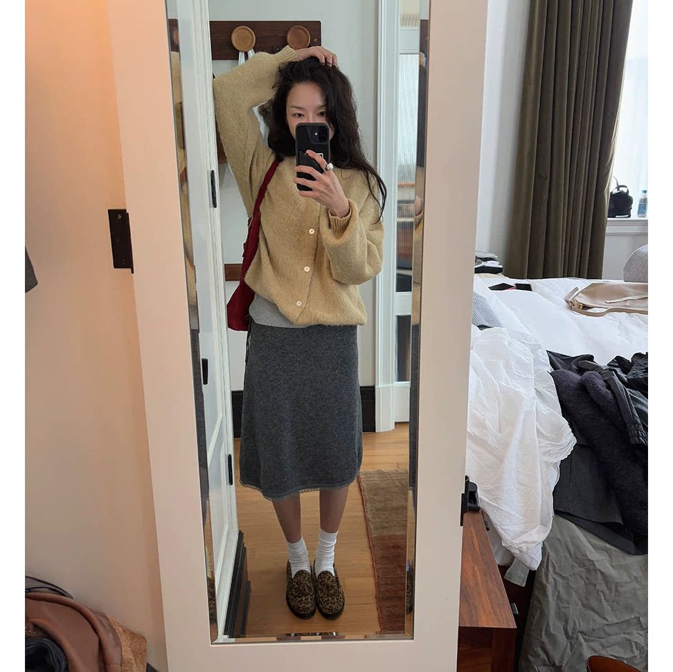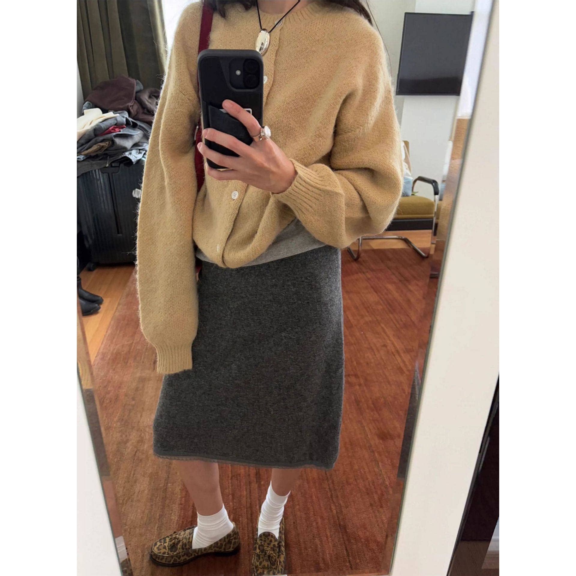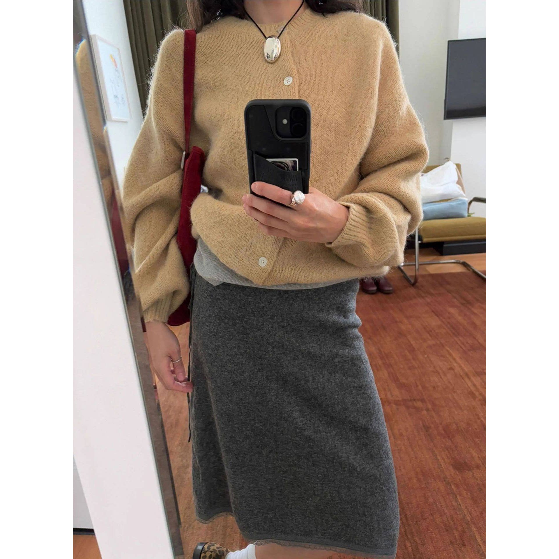 秒发baby酱蕾丝边半身裙春季新款韩国气质优雅纯色羊毛针织半裙女