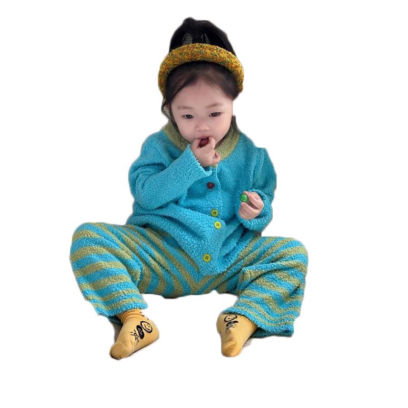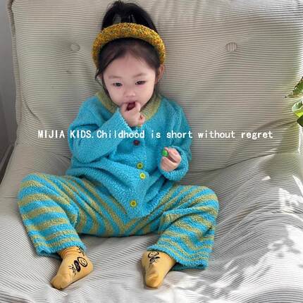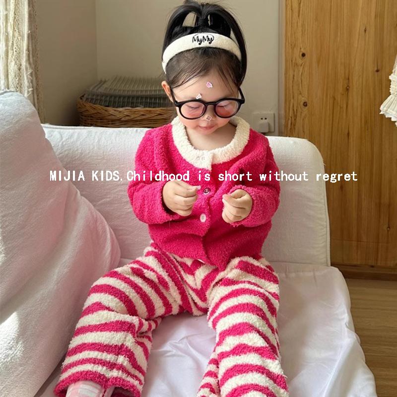 儿童睡衣秋冬款童装女童男童珊瑚绒半边绒保暖宝宝家居服两件套