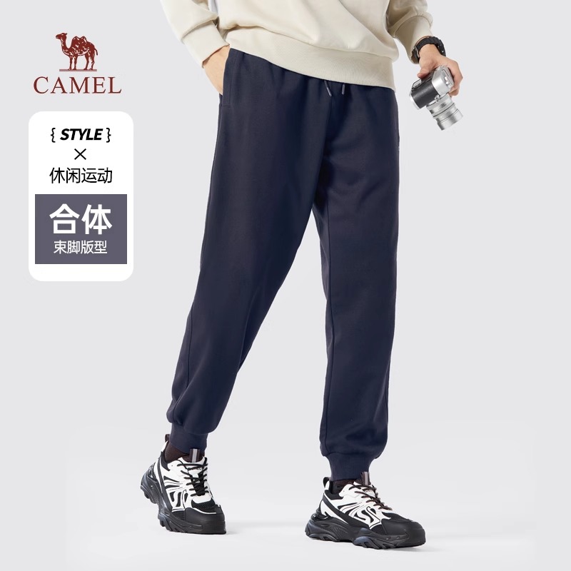 骆驼男装休闲裤2025春夏新款纯棉针织运动裤束脚宽松百搭卫裤男