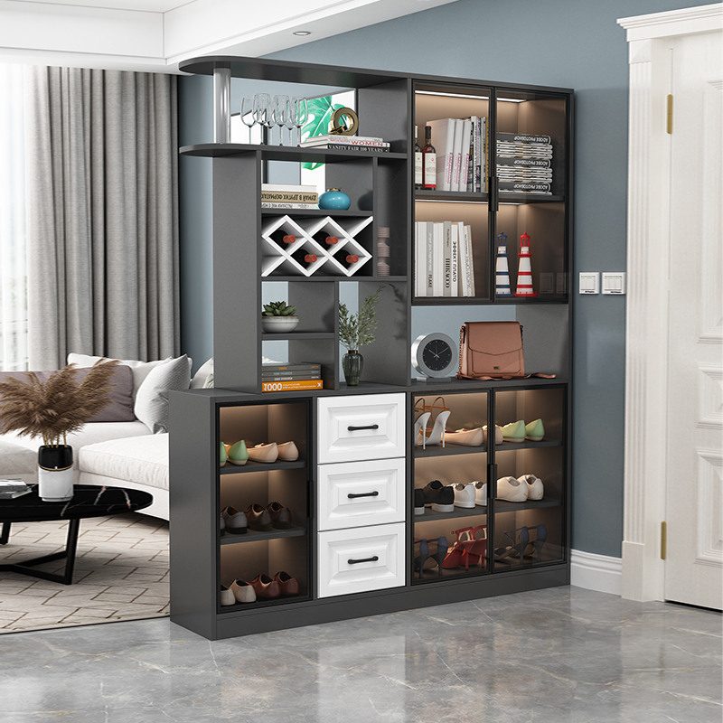玻璃门玄关柜酒柜鞋柜一体带酒格入户客厅靠墙门厅隔断装饰柜组合