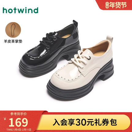 热风厚底乐福鞋女款2025年春季新款小个子增高黑色小皮鞋通勤女鞋