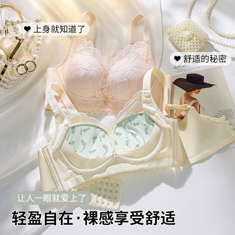 内衣女小胸聚拢收副乳防下垂中厚提拉性感蕾丝调整型无钢圈文