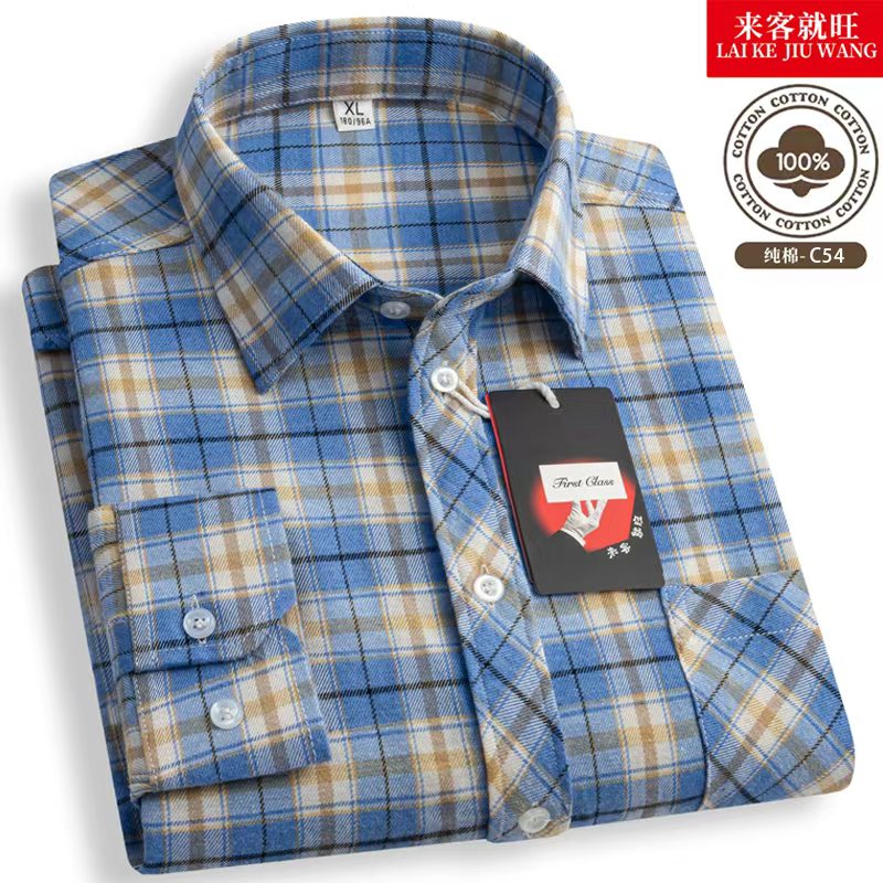 【清仓特价】纯棉男士长袖衬衫全棉磨毛格子衬衣商务休闲爸爸装