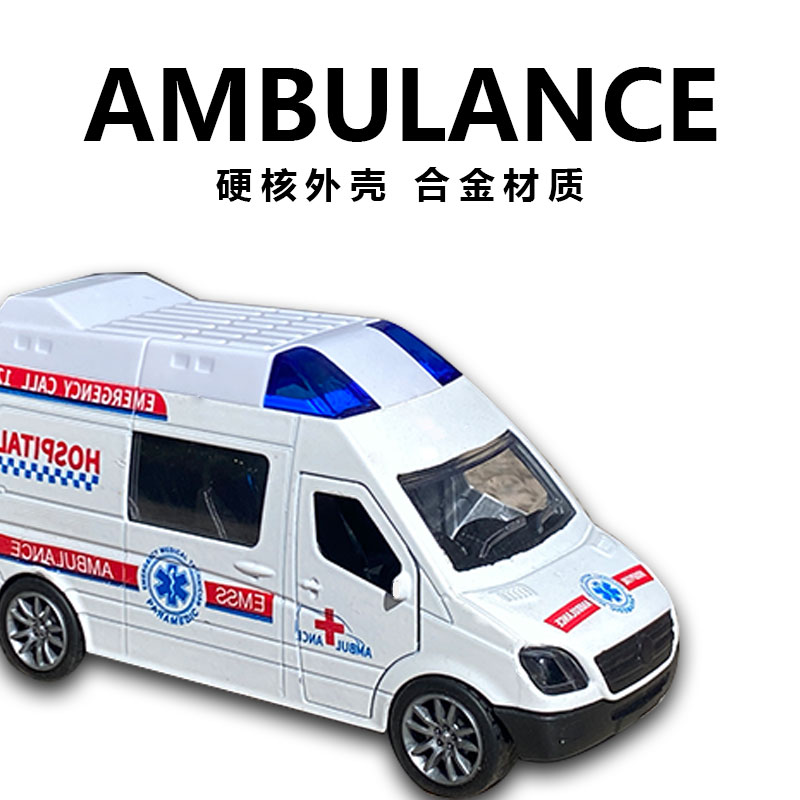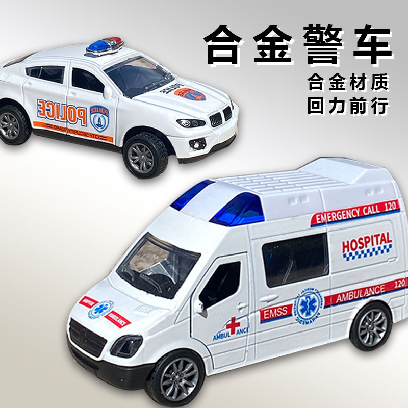 合金回力警车双开门金属口袋小汽车救护车迷你模型男孩摆件生日礼
