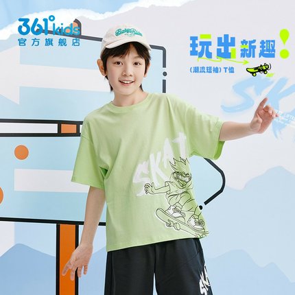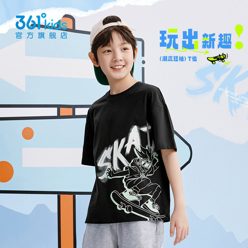 361°男童纯棉短袖针织衫新品2025夏宽松中大童运动T恤N52523203
