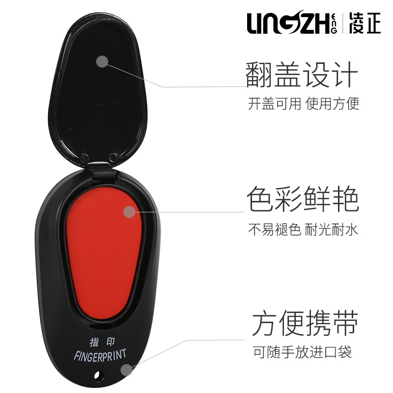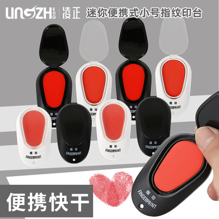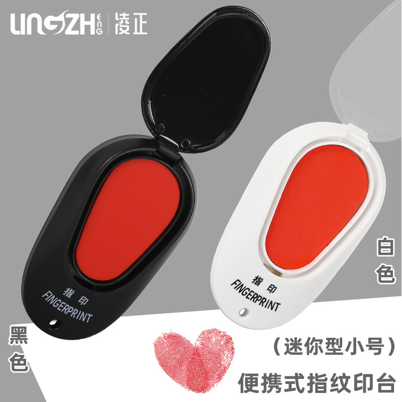 凌正便携式迷你小号指纹印台红色快干高清晰银行单位办公财务合同印手印口袋随身携带黑色白色款印泥印章台
