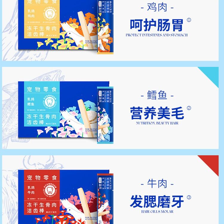蓝氏冻干洁齿棒鸡肉乳鸽混12支猫洁齿乳鸽猫粮幼猫咪磨牙棒猫零食