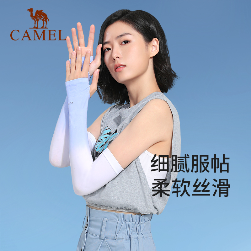 骆驼冰薄防晒袖套女防紫外线UPF50+夏长款手护臂男开车骑行冰袖