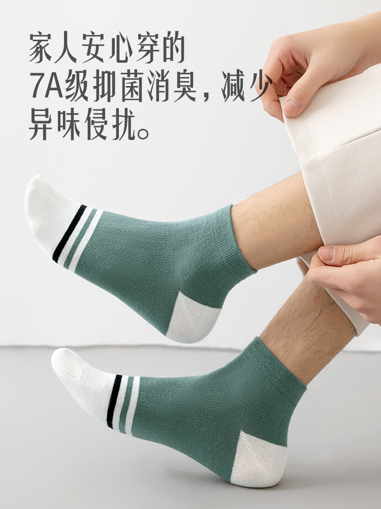 恒源祥纯棉袜子男士短袜7A抗菌薄款透气防臭吸汗夏季短筒全棉男袜