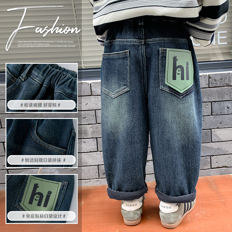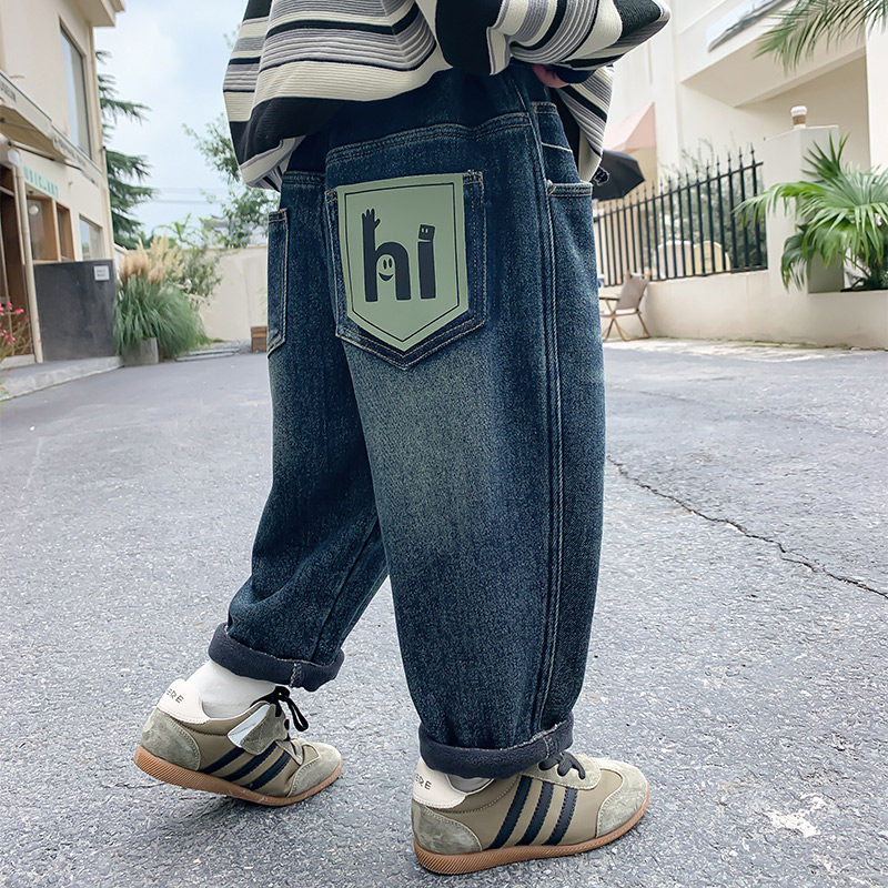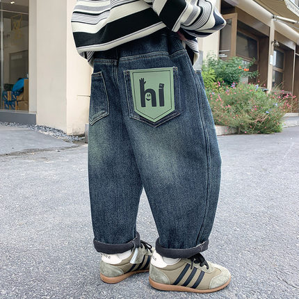 男童加绒裤子牛仔裤2025秋冬新款儿童加绒加厚一体绒冬装保暖长裤