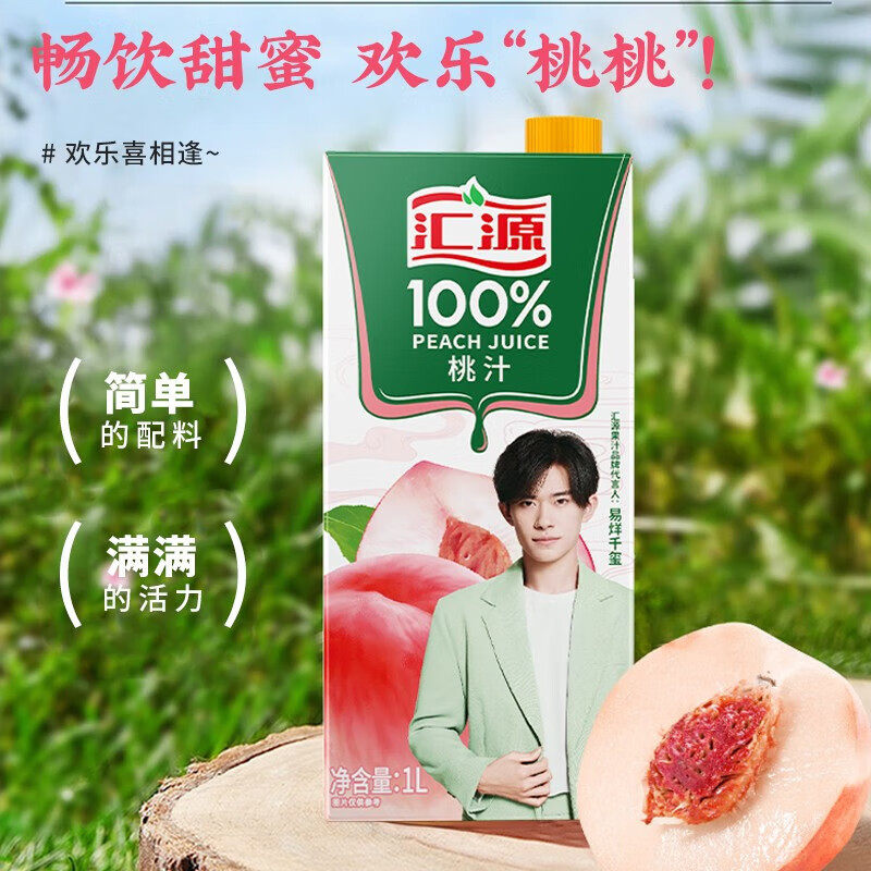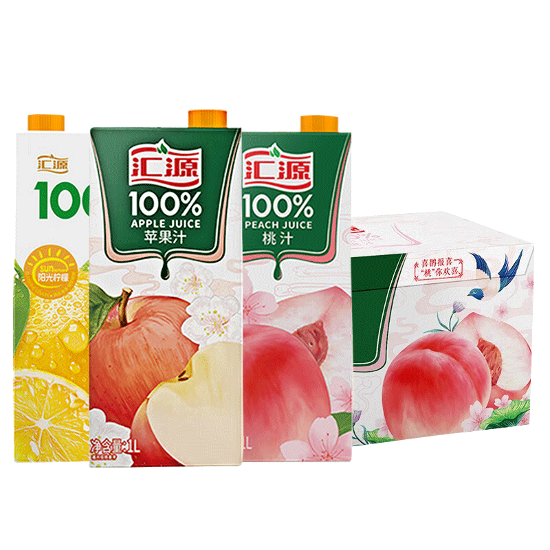汇源100%果汁1L*12盒整箱特价批发桃苹果阳光柠檬汁大瓶聚餐分享