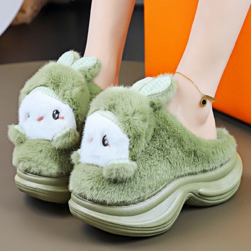 厚底增高棉拖鞋女可爱卡通结居家时尚拖鞋秋冬季加绒保暖防滑外穿