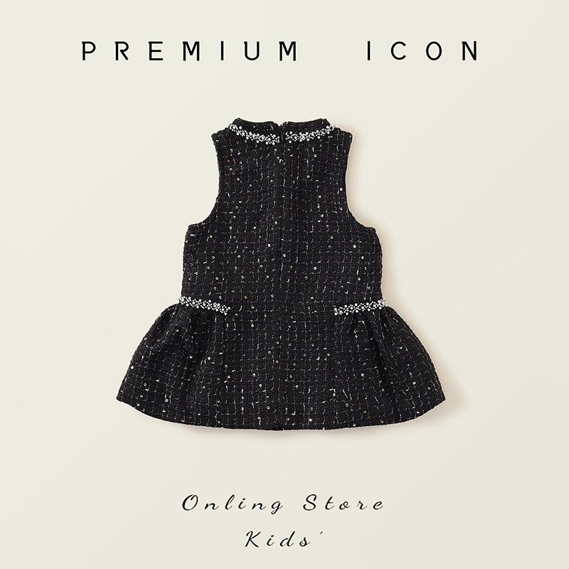 小香风女童粗花呢加绒背心裙2024秋冬新款儿童洋气女孩无袖连衣裙