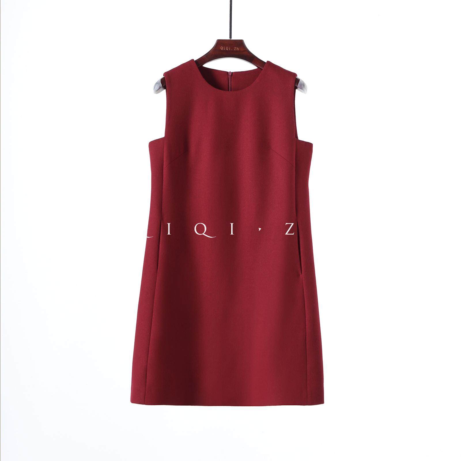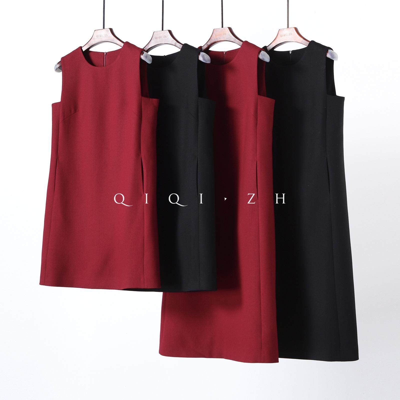 百搭羊毛背心裙 精纺羊毛圆领直筒宽松长 短款无袖连衣裙小黑裙J