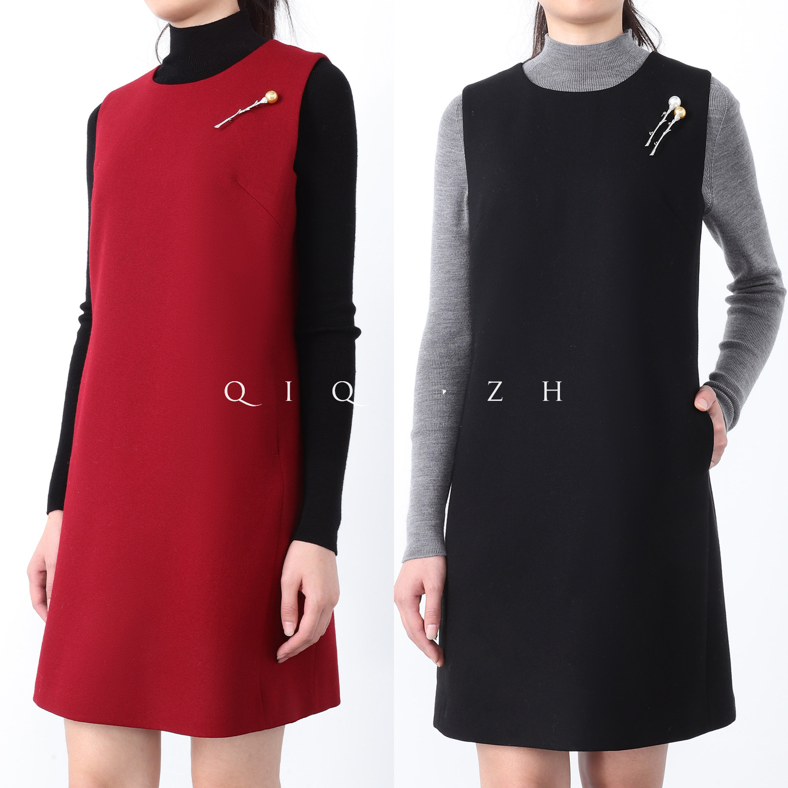 精纺羊毛纯色秋冬百搭背心连衣裙