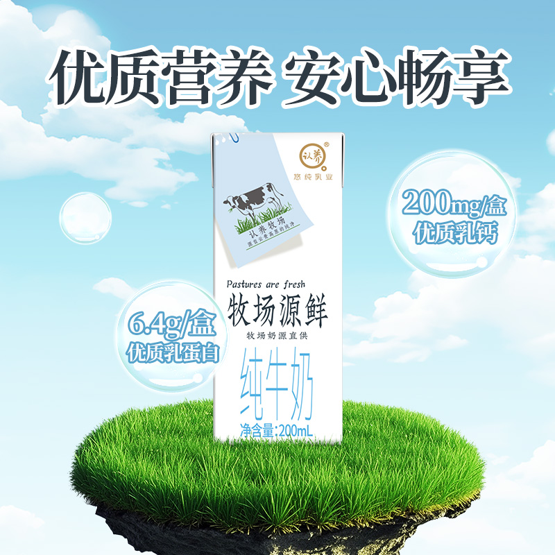 【牧场牛奶】认养牧场源鲜纯牛奶200ml*10/12盒送礼儿童早餐牛奶