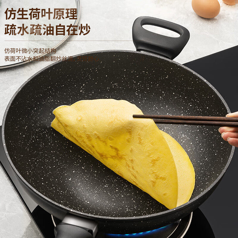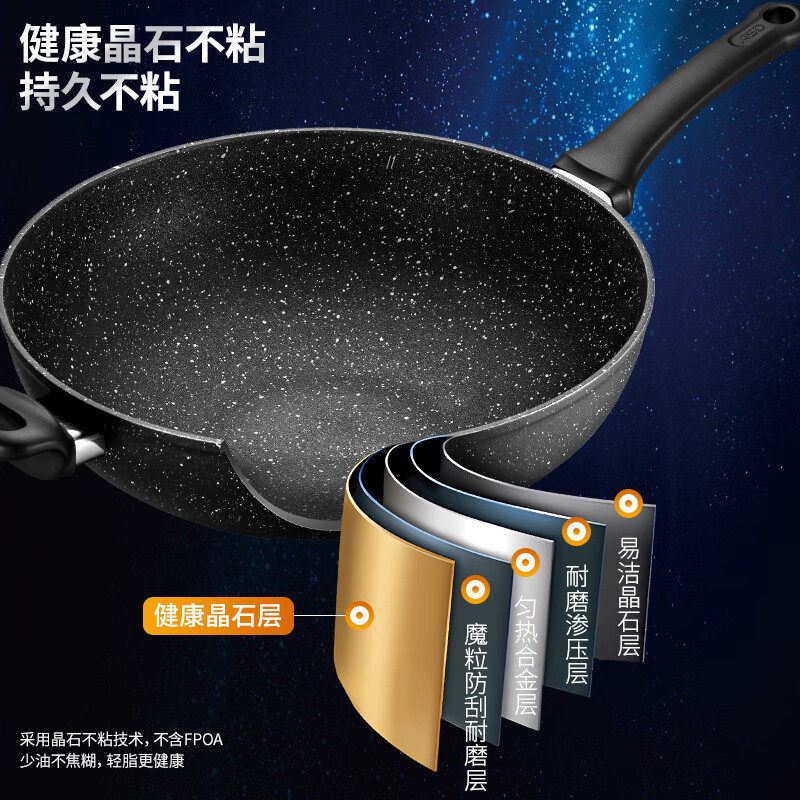 爱仕达麦饭石色不粘锅炒锅家用炒菜锅电磁炉燃气灶专用锅具平底锅